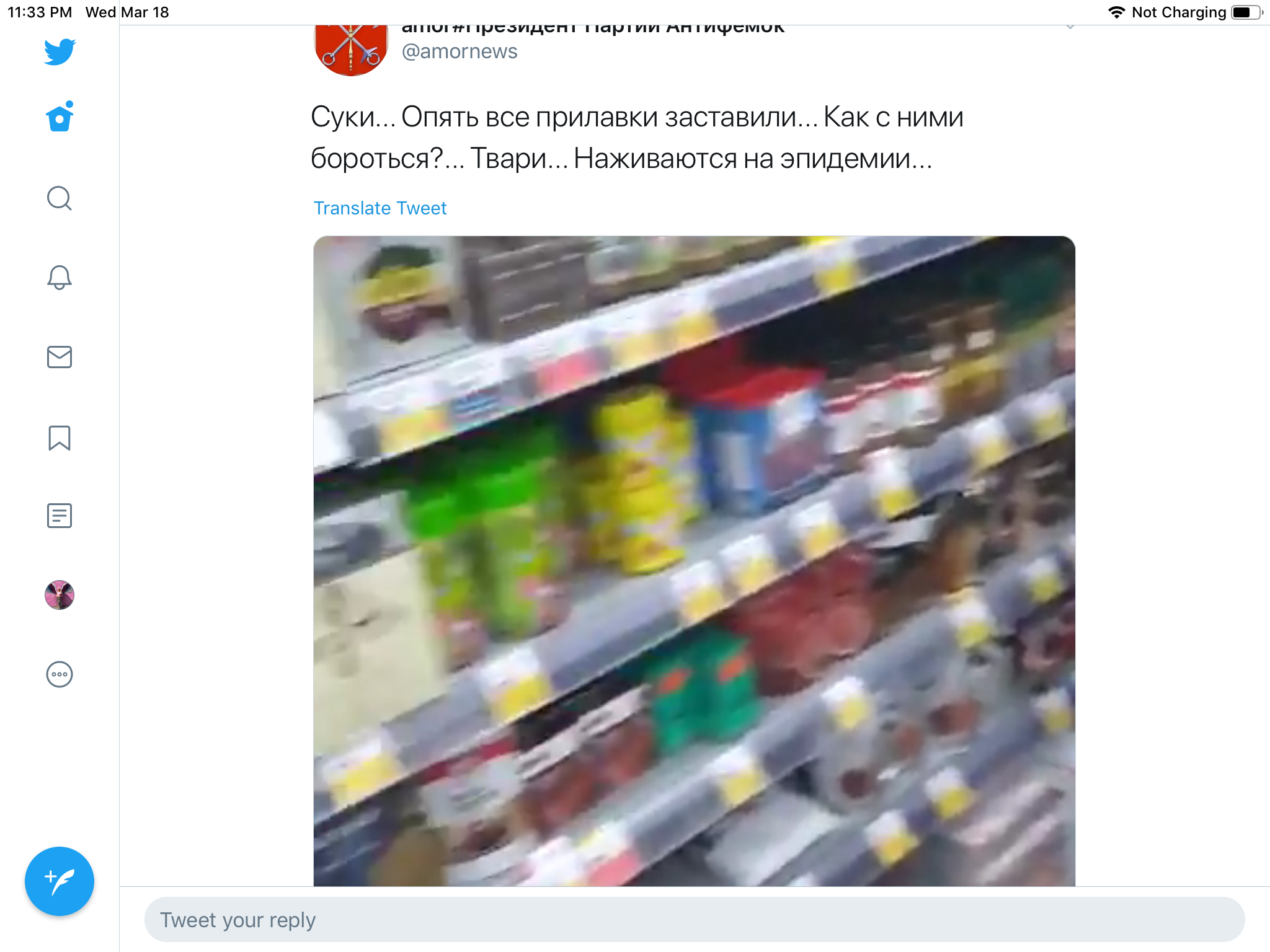 admin писал(а): marina писал(а): Я с подругой сегодня утром говорила. Она в Питере. Говорит муж вчера ходил за продуктами, большинство всего раскуплено и прислала фото пустых полок Я тебе показала полки- постят в Твитере и видео тоже Видимо как в США. В одних нет, в других есть. Я ехала - очередь в Костко была мамадорогая, аж вокруг магазина в два закрута. Отъехала 10 минут в небольшой Крогер - всё лежит.