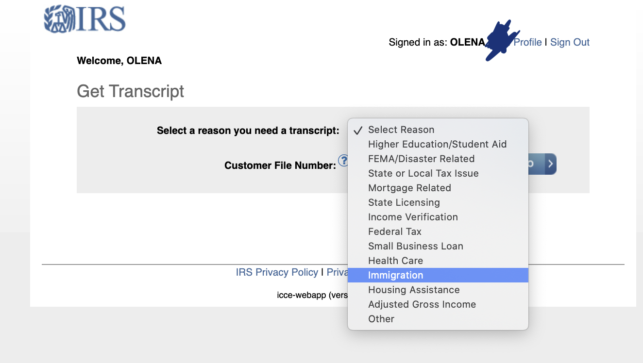 OlenaY писал(а): Может у вас другая ситуация, я не специалист. Но! Я тоже несколько лет налоги в глаза наши не видела, хотя файлим jointly. Когда мне понадобились копии, я просто создала свой аккаунт на irs.gov, и из своего аккаунта скачала все копии выбрав причину immigration purpose. Нашла много интересного в копиях... так что полезно в них посматривать и держать копии у себя в папке!