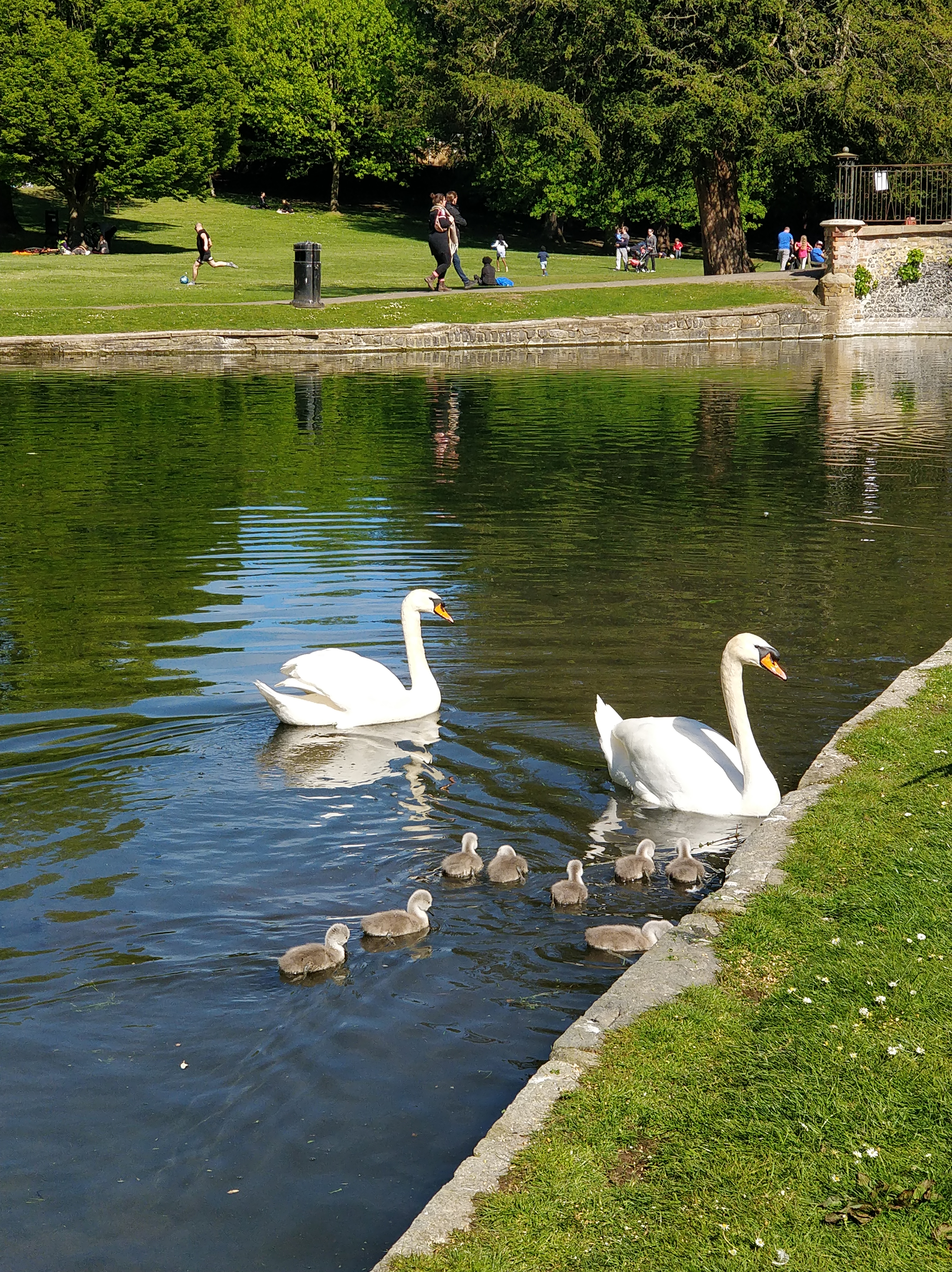 Мы сегодня пару часов гуляли по парку и вдоль озера, у нас сегодня солнце и около 20 Цельсия. А завтра опять 10, и пасмурно. Так что, народ сегодня гулял вовсю. Но дистанцию соблюдают, обходят друг друга стороной и т.п.