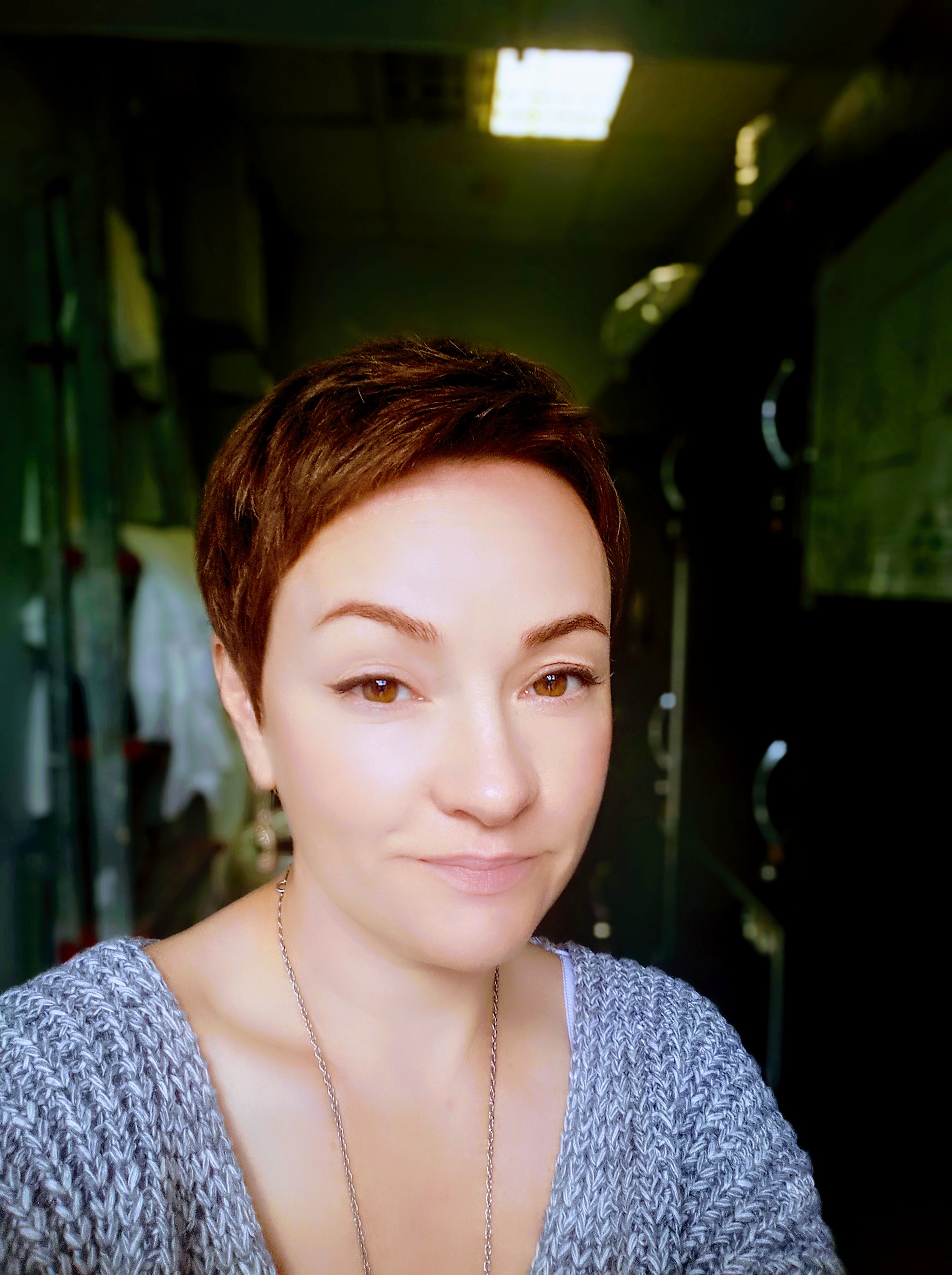 Форгет увидела с короткой стрижкой и рыжими волосами. Вам хорошо с короткой стрижкой, это редко кому идет (я уже писала об этом). Может, рыжий цвет посветлее чуть-чуть? А так лучше, чем блонд для Вас, по-моему. Аксессуары нравятся (да, отлично подбираете).