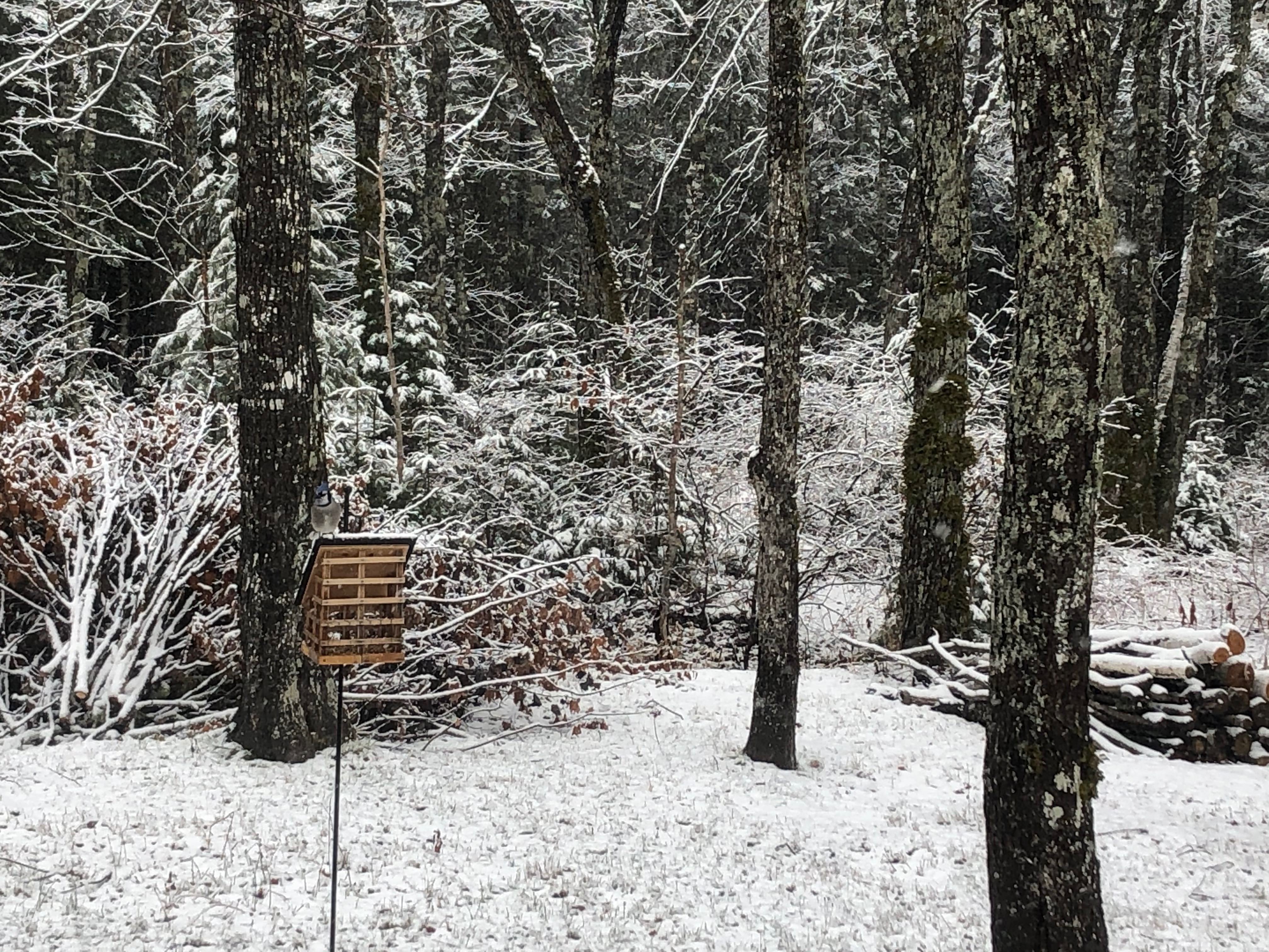 magnolia писал(а): Martina писал(а): И первый снег у нас. Найдите птичку))). Blue jay on the bird feeder.  Сидит грустный. Отверстия слишком маленькие для него. Только для мелких. А раньше блюджеи просто разоряли кормушки. Налетала толпа штук 8-10. Мелким ничего не доставалось.