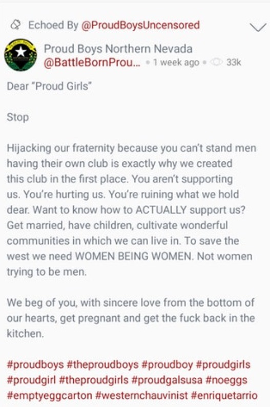 The Proud Boys Are Really Mad About The Proud Girls Being On Parler