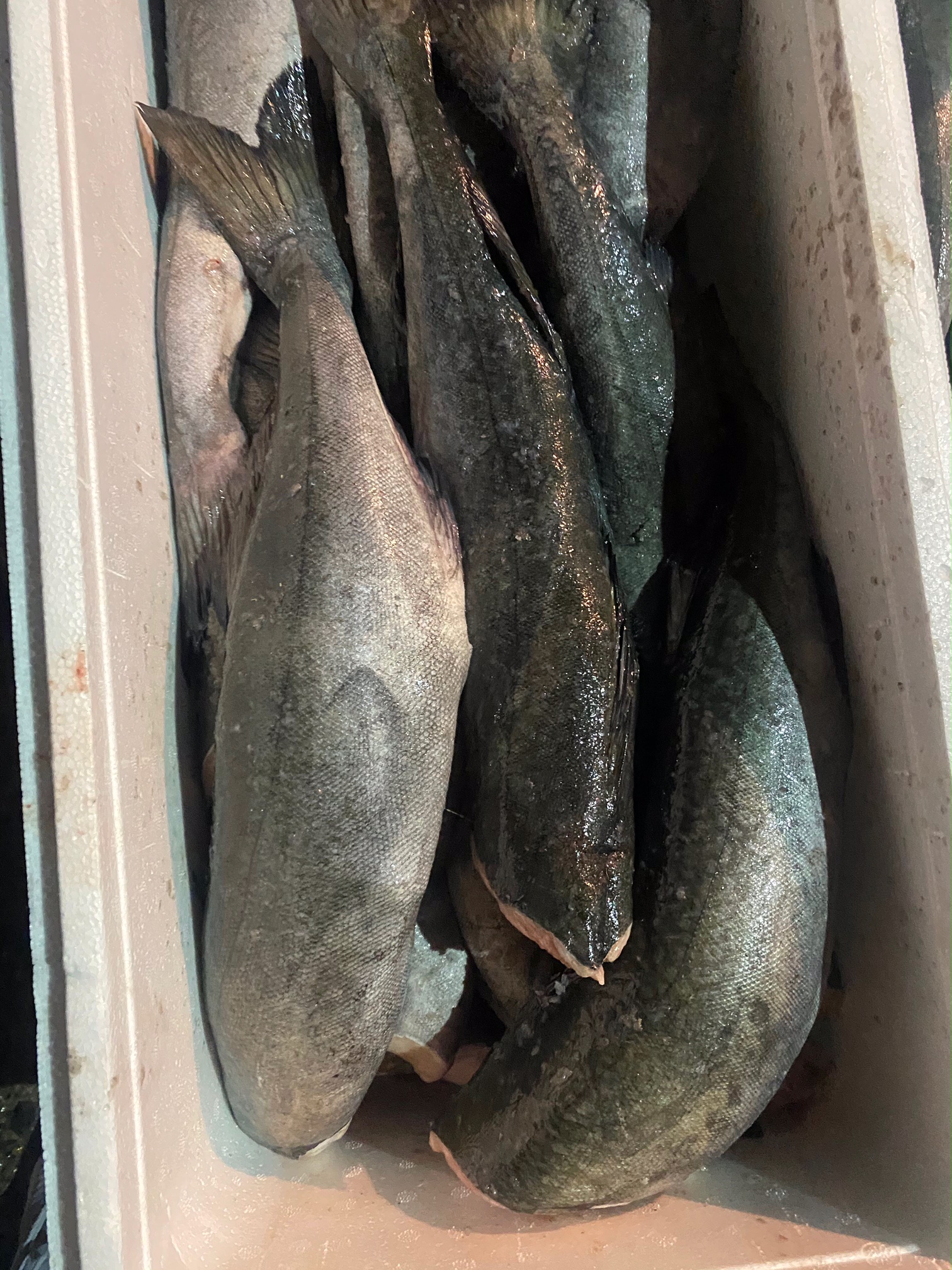Кто о чем, а я о жрачке, и не просто о жрачке, а о рыбе. Мои радости! Камбалы мне все равно не видать черноморской, догоняюсь местными прелестями. Черная треска вкусная, жирная и кости все на на месте, есть что обглодать! Ну вы уже слышали, что рыбу я люблю не пресноводную, а только salt water fish. Познакомилась я у индейцев с молчеком на заливе еще в июле, он по рыбе работает, мотается по городам да весям бизнес семейный у них много лет, поставляют рыбу по ресторанам и магазинам местным, и еще в августе должны были магазин открыть рыбный, но с этим вирусом все откладываясь. Цены у них не задранные. Пока они не открылись, он мне текстил, и я подъезжала к магазу, он мне с машины продавал. На дом тоже доставляют. Но самое классное, что магаз рядом с работой моей в 5 минутах езды. Они толко открылись на этой неделе. Но еще здорово, что он мне текст присылает как только что первый что то появляется. Таким образом я на Новый год при палтусе и чёрной треске найсвежайшей. Утром еще плавала, вечером она моя.  А, жизнь удалась!!!