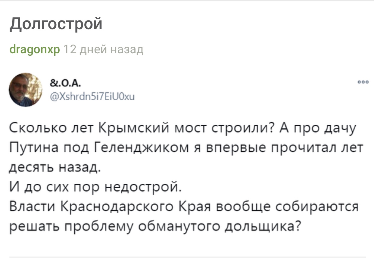 Dekabr писал(а): forgetmenot писал(а): Чей дворец то выяснили? Самый важный вопрос в стране последнего месяца ибо. А золотой ёршик нашли и склад грязи , аква-дискотека где ? А стриптизеры ? Как так? Поехали снимать туда , а там голые бетонные стены А вместо аква-дискотеки строится маленький фонтанчик . Наипали народ Пропагандоны ложанулись по полной программе , теперь везде ржач с мемами про склад грязи и прочую херню  Ржут над Ротенбергом - дешевую гостиницу за отель выдаёт. Заставил фсо голые стены сторожить  к тому же обслуживание гостиницы обойдётся в 100 миллионов ежегодно.