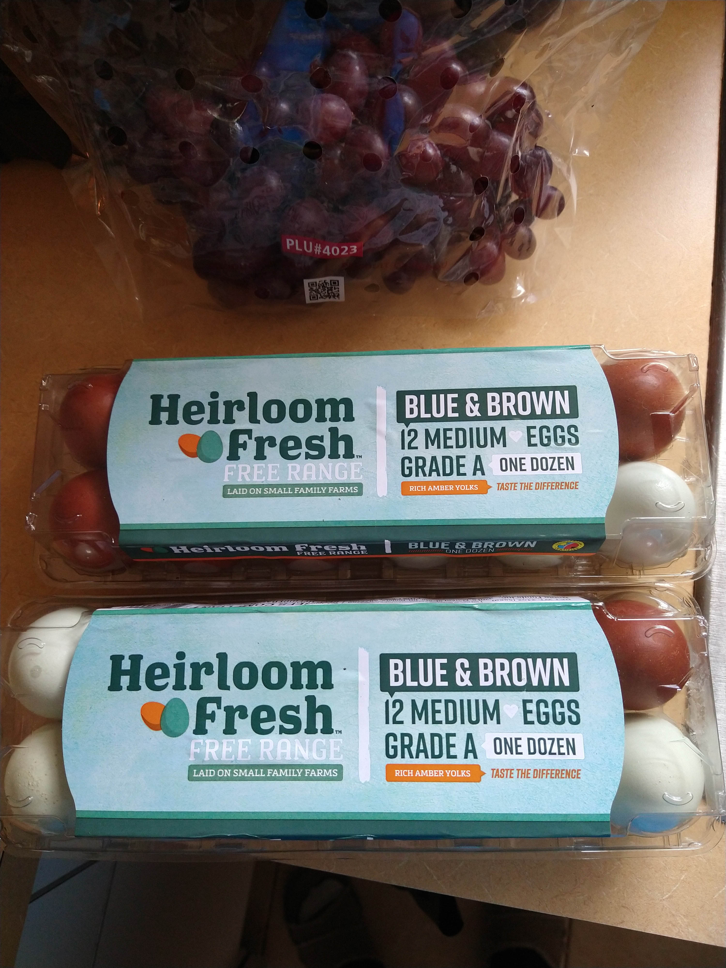 У нас появились новые яйца. Раньше их не видела. Они разноцветные, размерчик удивляет. Хоть и написано что medium, на самом деле они больше обычных Large. Желток просто оранжевый.