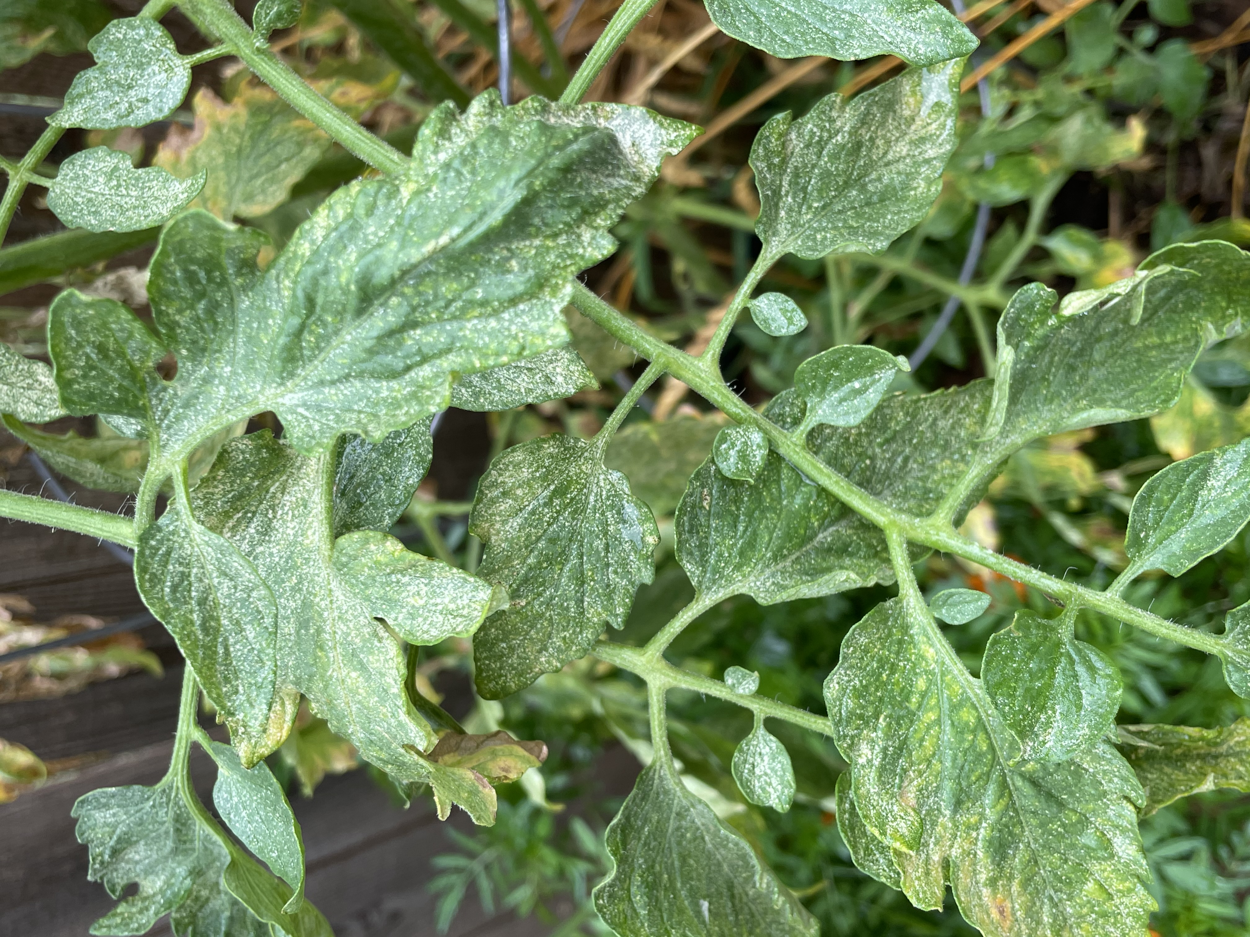 про громадные кусты - их есть у меня Один. ну еще от него пара пасынков отсажена - но они пока не вымахали такие. Этот, как можете заметить, выше окна. И это он еще на трех подпорках. Реальный лось. не знаю, заколосится ли до макушек (я его не пасынковала в надежде, что он немного раскидает скорость роста на всех, но нет - все с одной лошадиной скоростью растут.) На нем помидорины очень приличные болтаются, краснеть (желтеть - это желтый) пока не думают, наливаются. надеюсь, никто не отгрызет. Куст пока зеленый, но на некоторых листьях стали появляться не знаю точно кто - клещ ведь? кто-то невидимый, паутины нет, но листочки высасываются. Вот фотку нашла другого куста - чем травить, чтоб самим не отравиться?