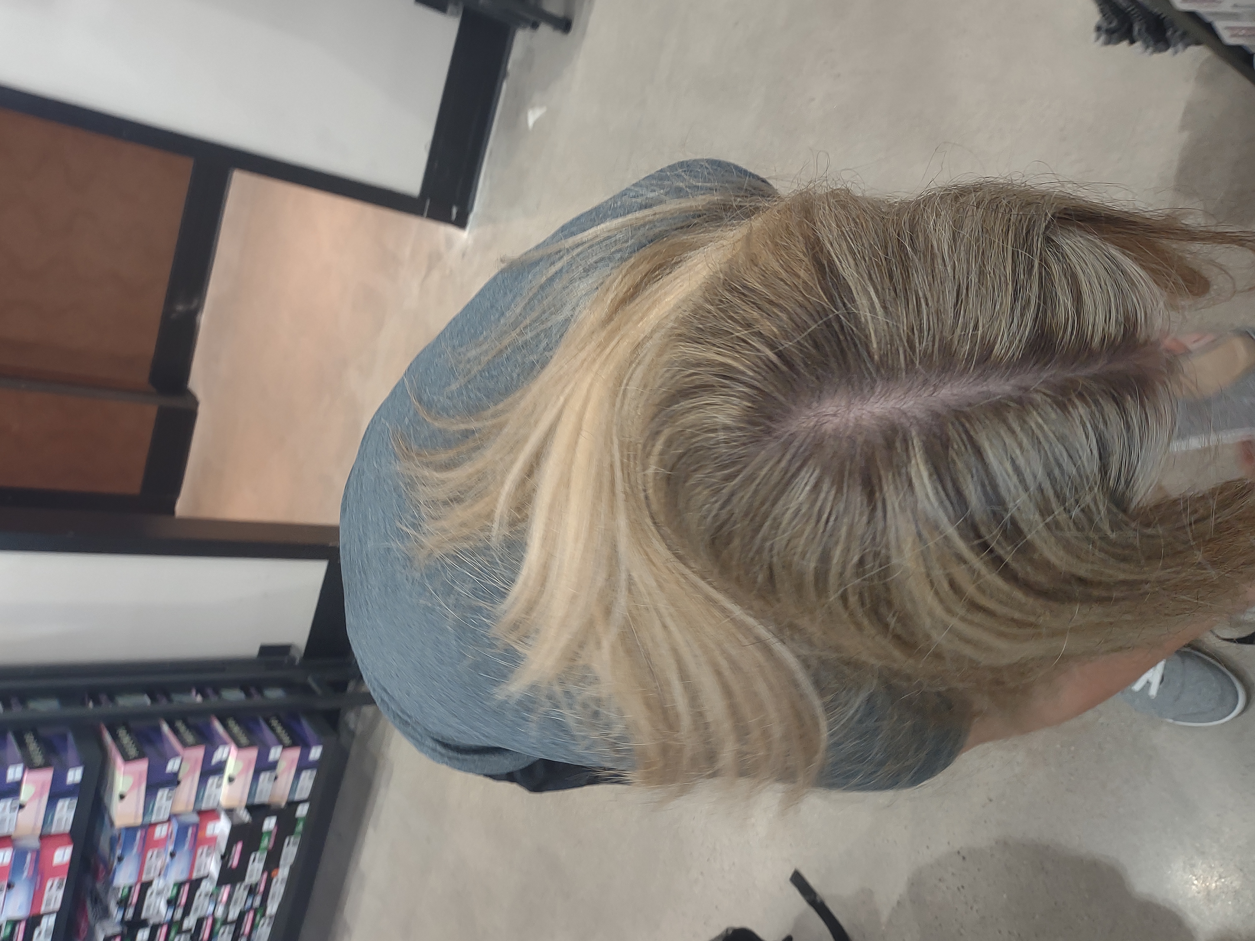 Подскажите знающие, что моей дочери накрасили. Ходила сама, объясняла сама. Вроде просила хайлайты. Та фотография где она обувь меряет (кликнуть надо на фото чтоб оно повернулось), я не могу понять почему корни не покрашены (фото сделано на второй день после покраски). Это так надо или мастер был криворукий? Как уже говорила, я в покрасках ничего не понимаю