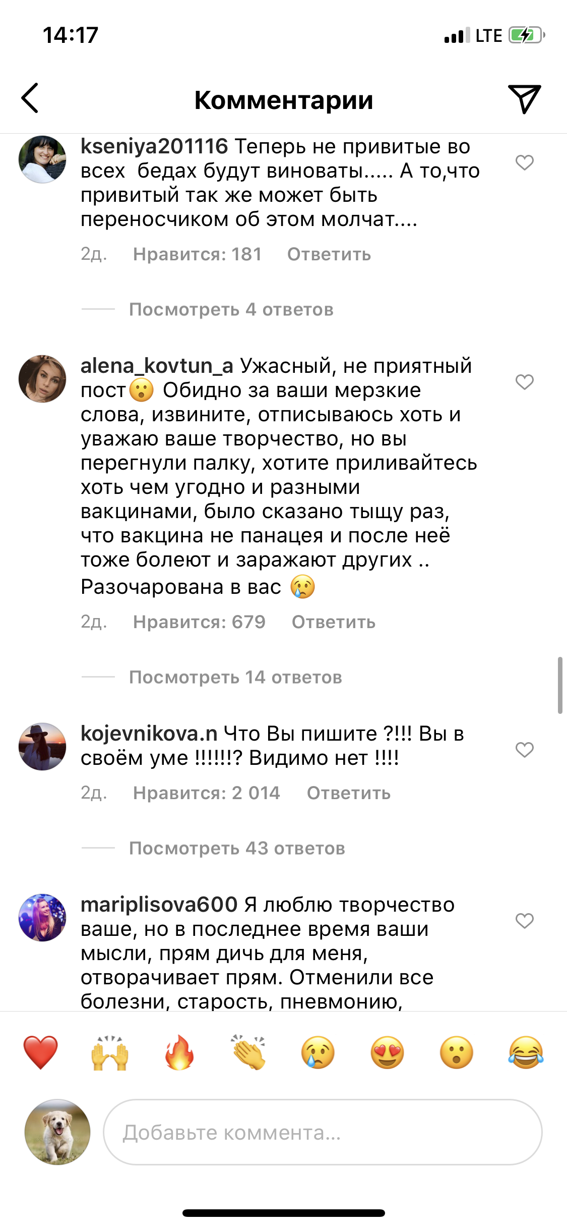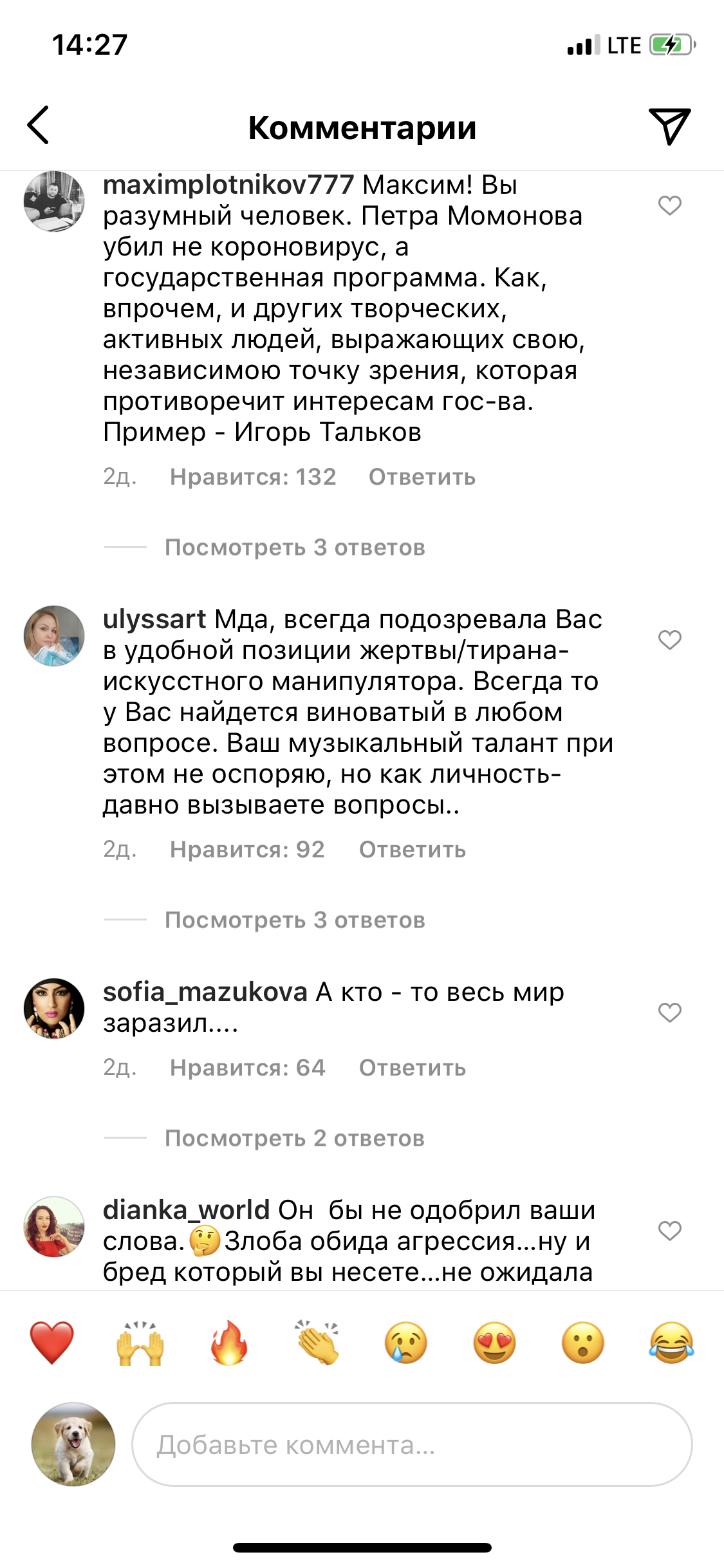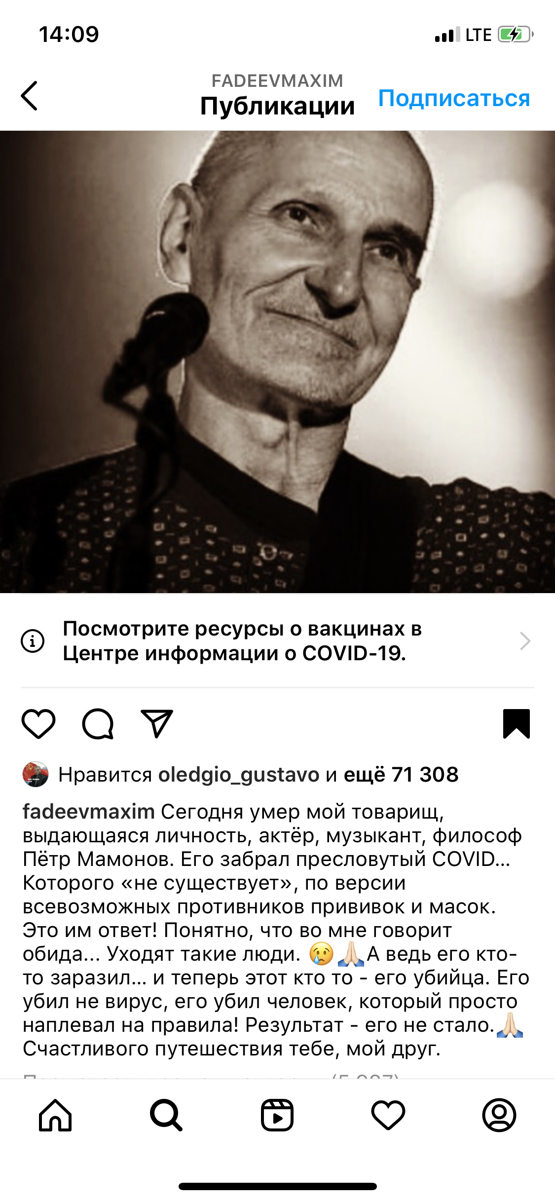 Права Казарновская , сломают они зубы об Россию . Америка уже давно дыра , а люди зомби . Только в Рф думающее население , а не послушные овцы. Радует что под пропагандистским тупым постом Фадеева 5000+ отрицательных комментариев . https://www.instagram.com/p/CRXJJjyriSp/?utm_medium=copy_link