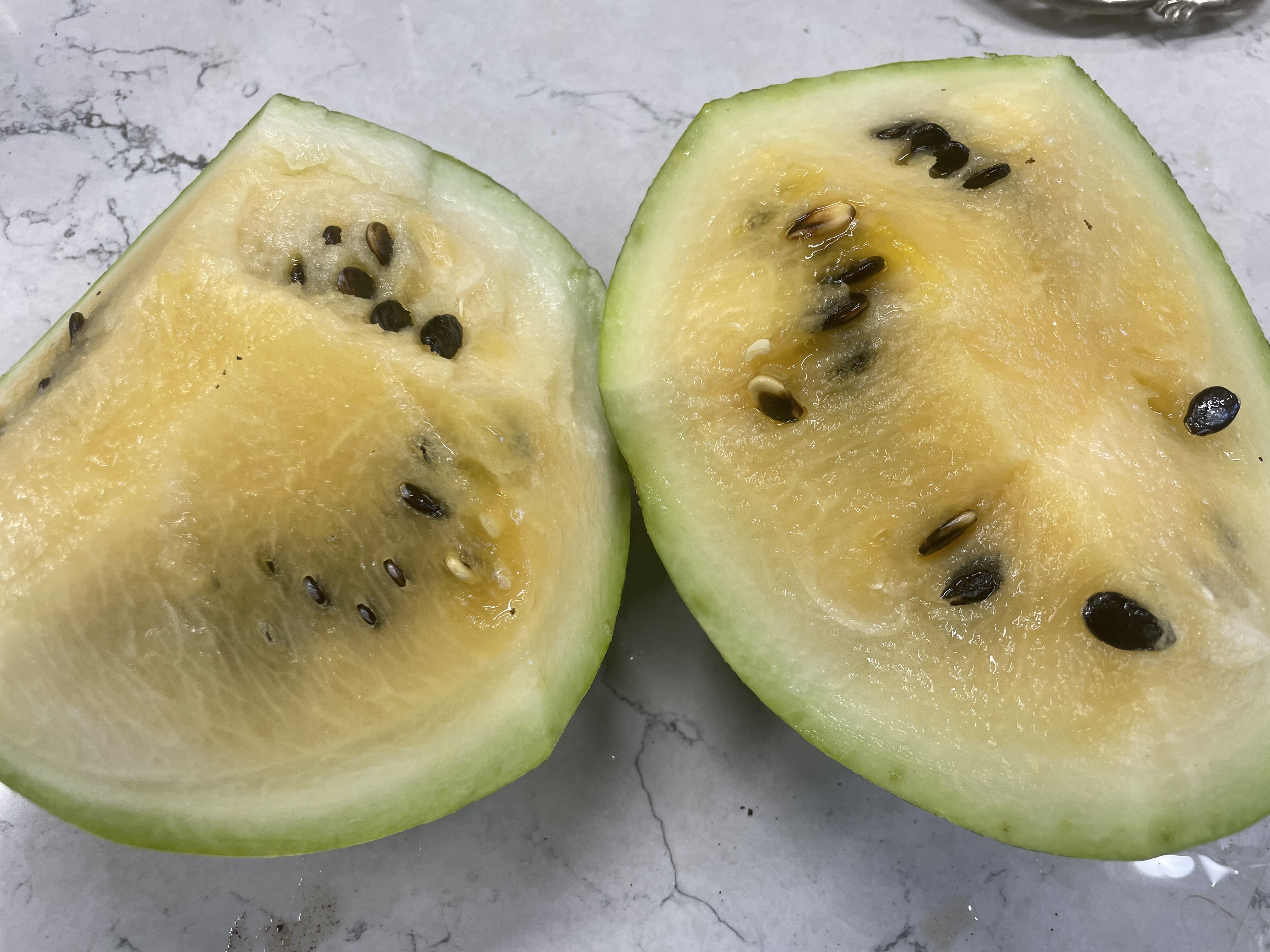 OklaXoma писал(а): monaliza писал(а): В целом ему, наверное, и было чуть больше месяца... Но какого хрена лопаться-то... наверное, не сегодня - разлоп заветрился и начал слегка пованивать. Однако все же решила заглянуть, че там внутри - семечки-то явно зрелые, почему же ниразу не красный? Прямо скажем - даже и не розовый. Срезала заветренный край, и оказался вполне себе сладкий он...но желтый. 2250 г. Sugar baby - он ведь красный? или я такой вот себе дальтоник...
