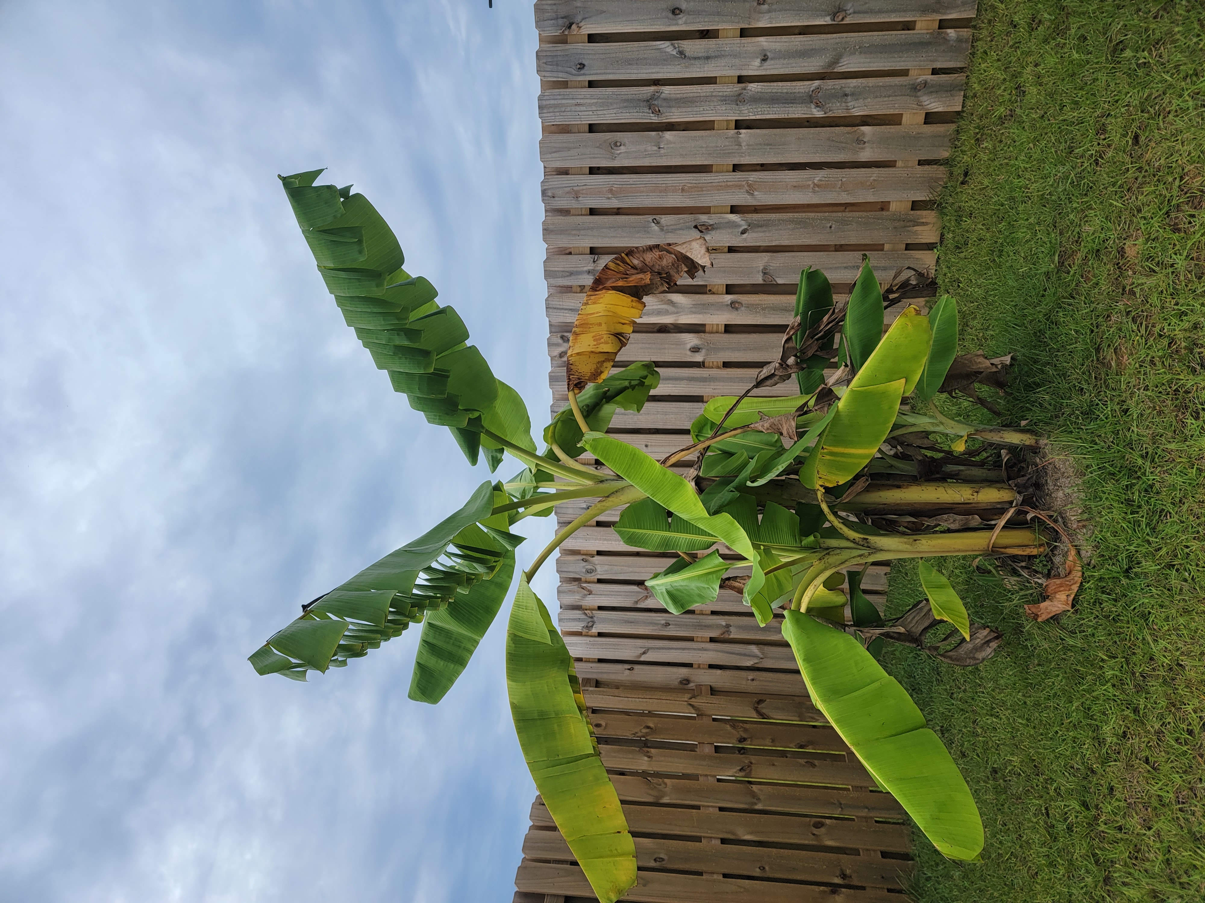 Бананы растут рощами, приеду домой- сделаю фото Мы вокруг них не пляшем... После первого фроста замерзают и так стоят до весны. По весне начинают со всей дури расти и размножаться Думаю, у вас лучше не выкапывать, просто молча или соломы сверху насыпать- так проще... ну, для меня, по крайней мере  Дома могу...но им не лучше ли все же поспать? Бананы я тоже планировала бы не выкапывать, один просто как в горшке есть, так пусть и стоит зиму - для гарантии. чтоб не все яйца в одну корзину. Два уличных, конечно, уже не буду трогать, засыплю. Кстати, вот твои замерзают каждую зиму? а весной ты обрезаешь это сухое - до какого уровня? Под бананами у тебя какая земля? какая есть, или копаешь яму и засыпаешь чем-то более плодородным? вообще удобряешь их или и так нормуль им? А какой высоты твои? Про полив, навернео. спрашиватиь смысла нет - у вас же влажно? Молодой еще спать то... поди не особо устал от жизни  . На ютубе есть дэвушка Лена с адениумами... фанатка просто этого растеня. Так она им на зиму отдельную комнату выделила... и все шикарно Бананы замерзают после каждого фроста. Не обрезаю вообще. Это для них как шуба, сердцевина стоит укутанная. А по весне вылезает новый лист (прямо из верхнего засохшего листа) и продолжается рост. Этот я привезла со старого места в очень дохлом состоянии, метр с кепкой. Выкапывала зимой, потом долго не могда пересадить в грунт из-за погоды, думала не выживет. Земля- сполшая глина, местами с песком. Я при посадке накидала в яму, что было под рукой: остатки самодельного компоста, очистки, немного покупной земли... Ничо, выжил! Удобряю периодически, как Господь на душу положит, т.е. безсистемно. Полив им нужет хороший, это обязательно.