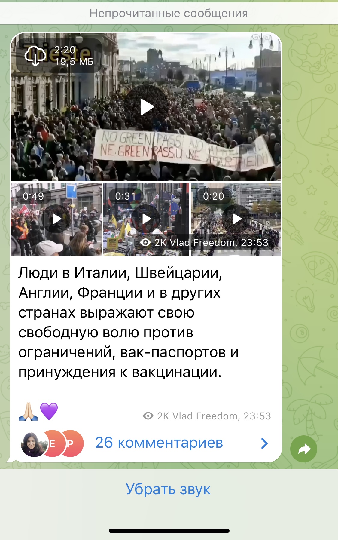 Шапокляк100 писал(а): Амалька, я почему вопрос задала - где ты... Европа и США нафиг никого непривитых не впускают. Плюс, не знаю у кого как, но собрала сведения из первых рук (включая свой собственный опыт), что после этих мифических прививок, имунная система принимает только лекарства той страны, где прививка получена. Может, конечно, это какие-то. временные побочки. У знакомой сын живет с семьёй в Германии. Там вообще какой-то усиленный карантин ввели. Короче, ни он в гости не может приехать, ни она к нему. Сын айтишник, жена в банке типа CPA работает. Сын говорит, что выпихивают по-тихоньку айтишников с работ. Сша пускают непривитых граждан по пцр пока еще . Но я пока и не собираюсь возвращаться . В Европе большие протесты . Против вакцин и ветеринарного паспорта . Это показывают по тв в сша? В России нет, тишина: А на телеграф каналах видио огромных протестов по 5-10 тыс и больше человек каждый почти день .