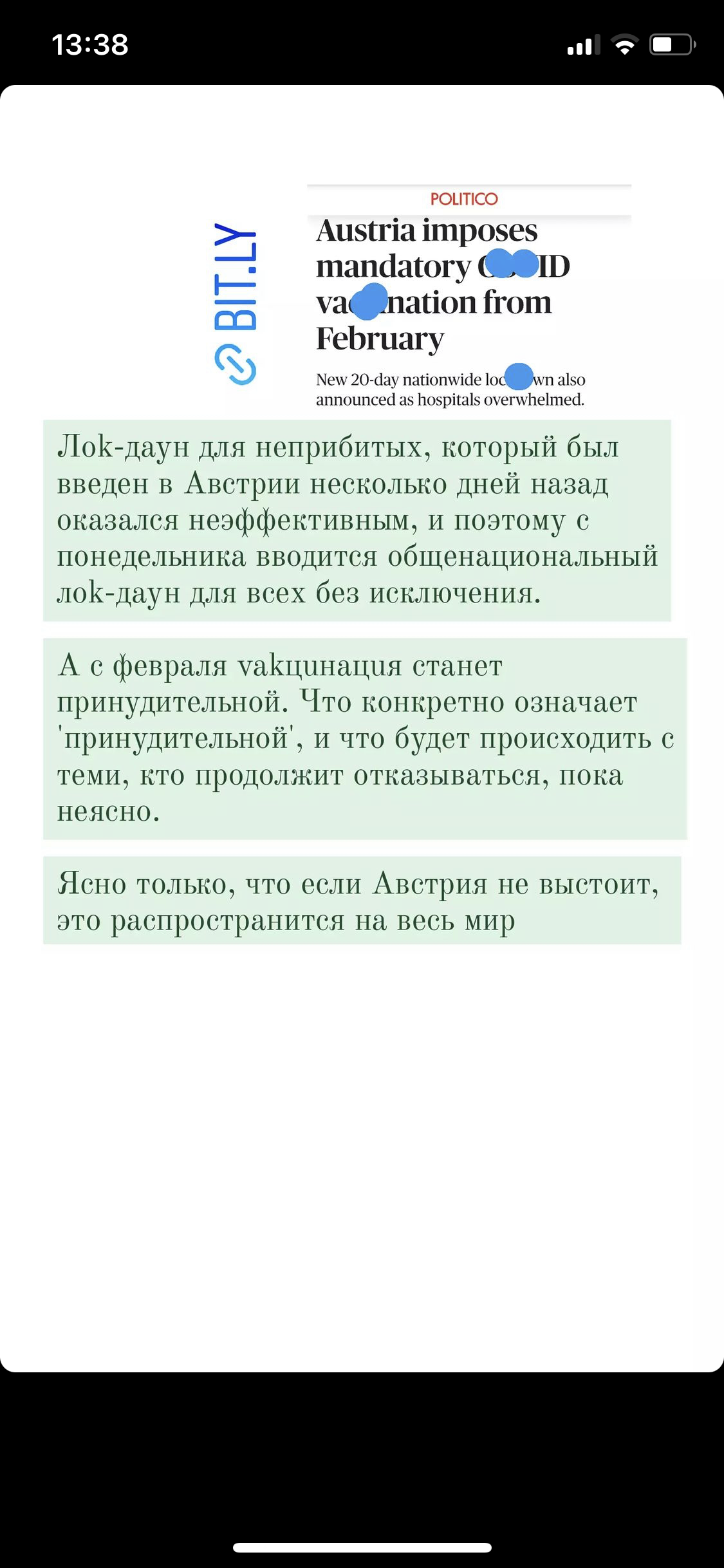 Nata_5 писал(а): Ага, легко и непринужденно. Сейчас родственница из ростова звонила. на час болтовни 30 минут кашляла. С августа...все кашляет. нормально так легко поболела-50% поражения легких было и в больнице месяц. Мужик ее дома лечился, но там мама была учителем докторов-сам себе уколы в живот ставил гепаринился. У того и другого давление теперь скачет-чего сроду раньше не было. Во весело и легко переболели и до сих пор веселятся-в голос говорят что дураки надо было прививаться-считают на пальцах месяцы-побегут через полгода ставить...ага, нифига не старики, там гектар и работа и хозяйство в дурдоме на двоих с бассейном. Кто несет что за 2 дня тут переболел-там никто теста не делал-они думают что переболели-у них все еще спереди. Ну вот , опять слухи Знакомая знакомой ( как вы это антиваксерам говорите ) В моём окружении тяжело болевших ковид просто нет, Все болели как орв.