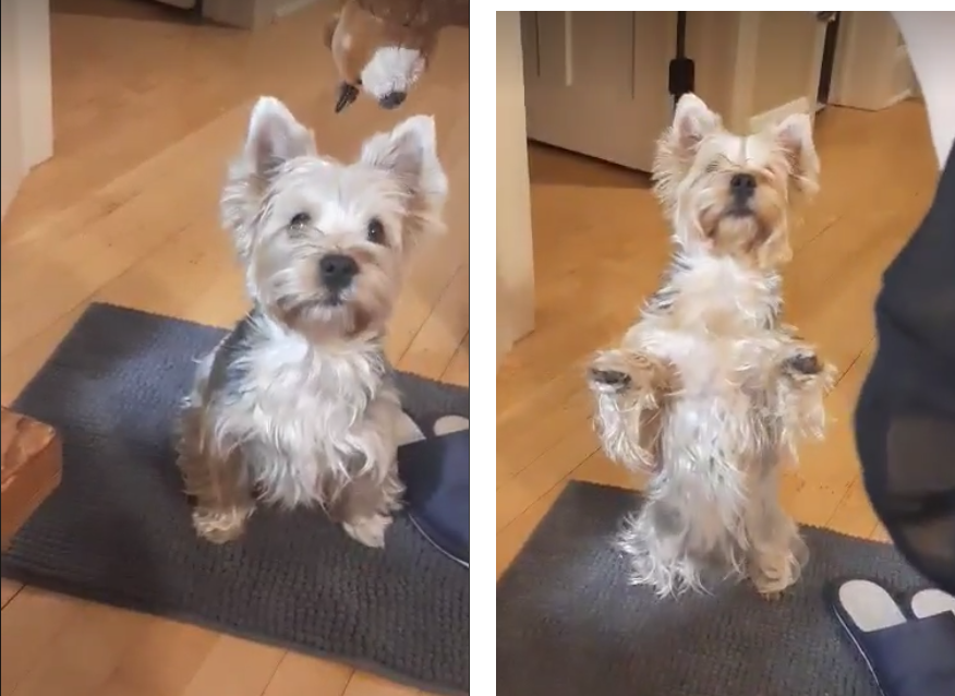 Дочка приучила Бекки сидеть на задних лапах, как заяц :))
