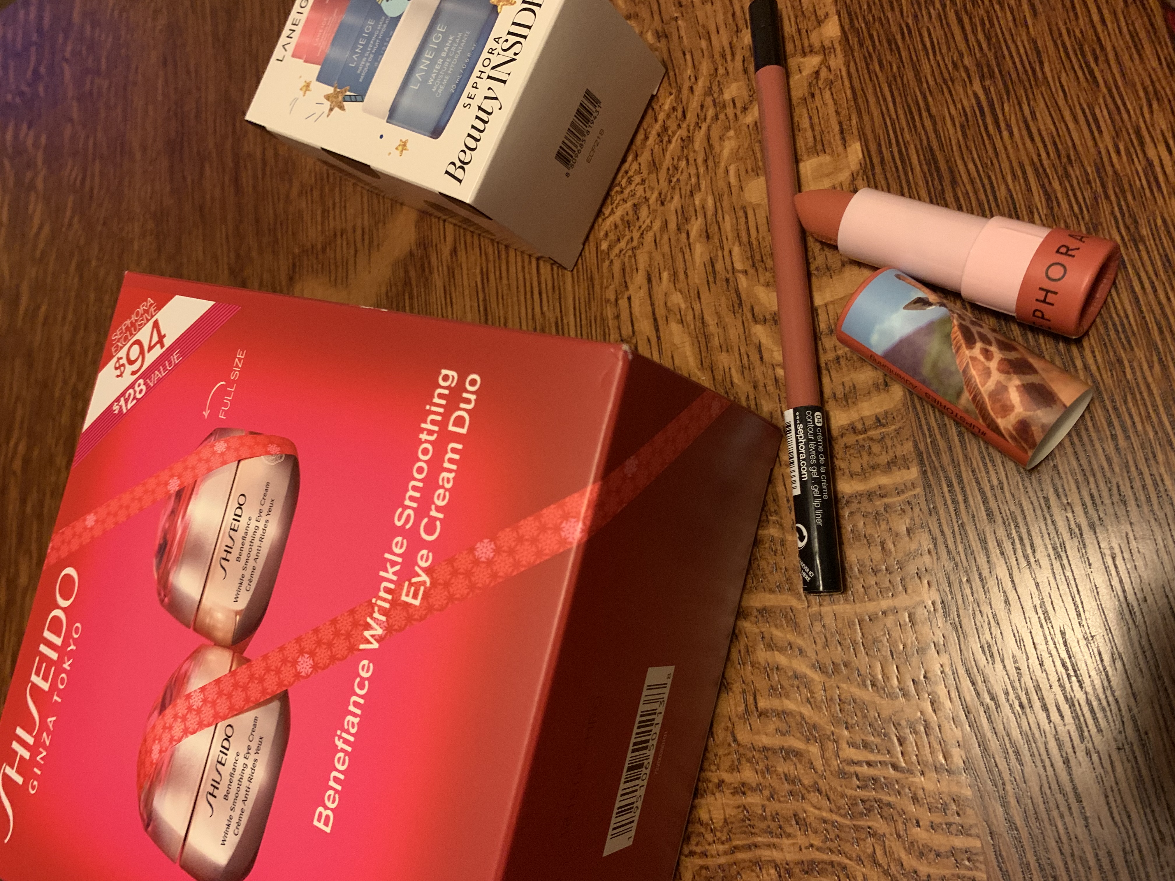 Я много чего набрала но часть отшиппила к ин ло, тк в отпуск ездила. Поэтому даж не помню чего набрала. Сегодня из сефоры пришло. Помада кьютная. И цвет понра.
