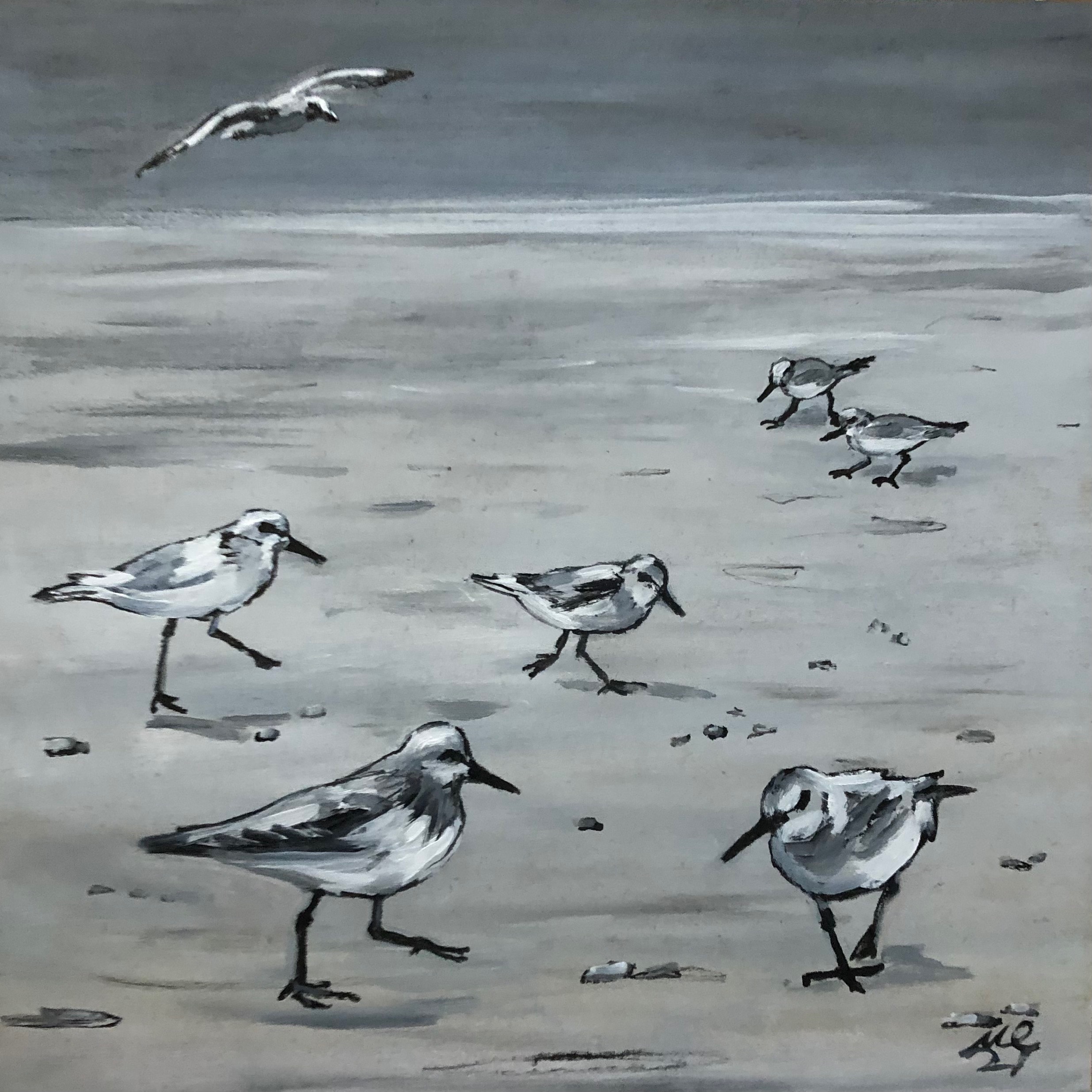 Спасибо, Джакси! Это с моей фотографии летом на берегу озера Huron, в Канаде. Сначала думала, что это молодые чайки-подростки. Но у чаек лапы с перепонками и клюв другой. Нашла, что эти птички - sandpipers. Не знала раньше о таких.