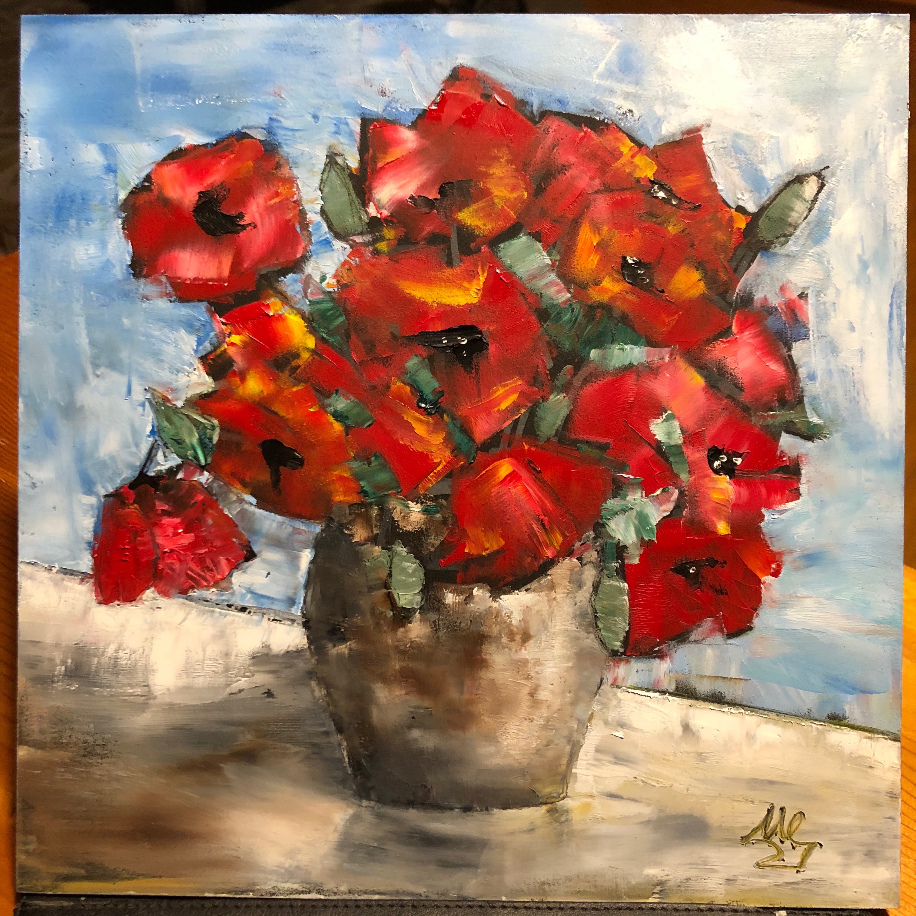 всем за оценки! Но меня уже потянуло в другую сторону использовать любимый инструмент - мастихин. Маки и фрагмент.