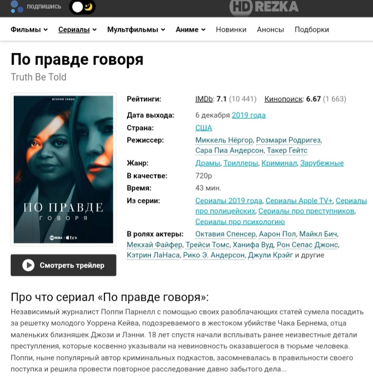 Интересные оба сезона https://rezka.ag/series/drama/32749-po-pravde-govorya-2019.html