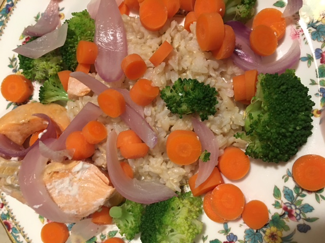 Lyuna писал(а): Это такая редкость, когда муж ест овощи и фрукты. одно из любимых блюд супруга королевский лосось и овощи на пару с коричневым рисом (моркови много у меня получилось - пришлось все ей закидать, но ему чем больше тем лучше)