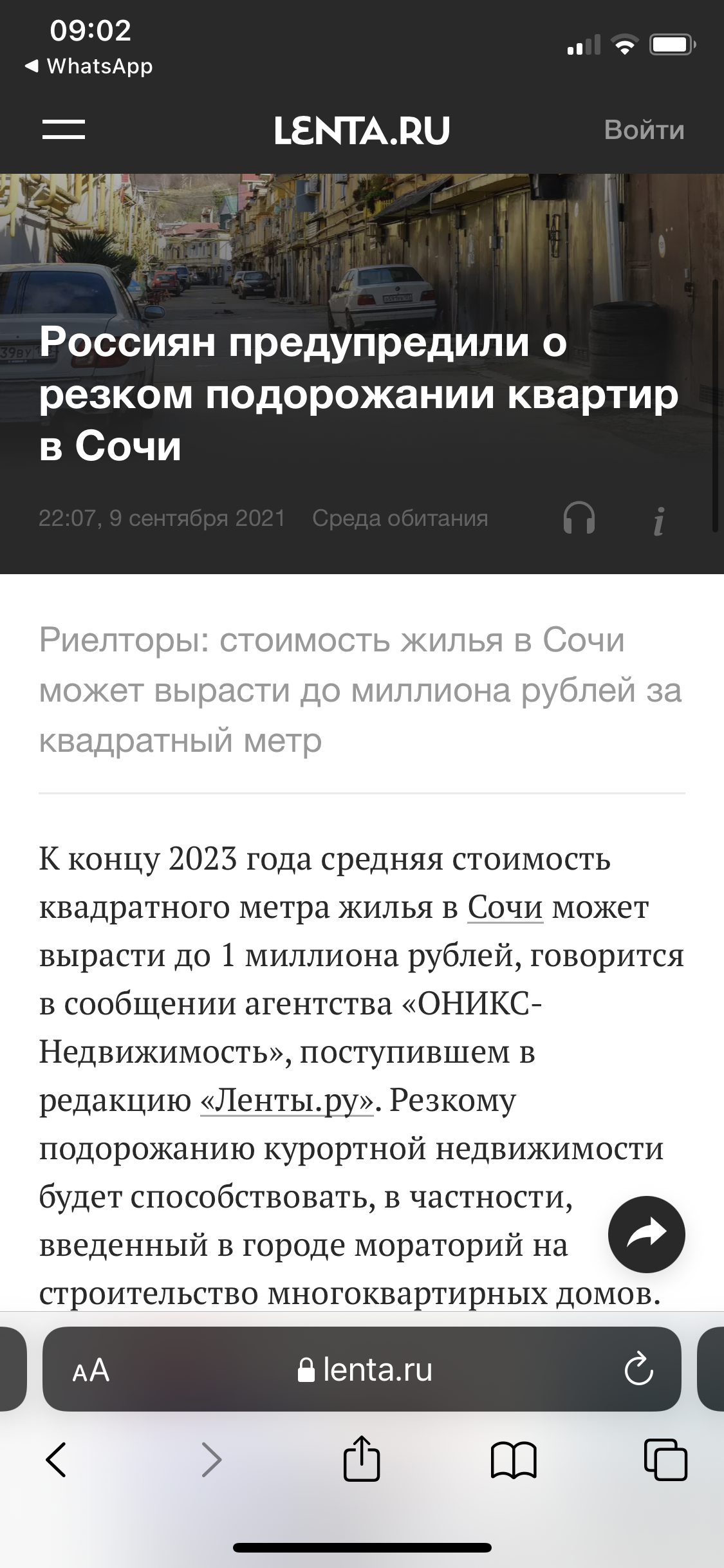 Jaxi писал(а): suslik писал(а): Maribella писал(а): Амалька дома сидит с пенсионером-лузером в студии, никуда там в Сочи не ходит, вот у нее крыша и поехала  почему лузером? насколько я помню, очень успешным лоером был. ну а сейчас если на пенсию вышел, чего не жить в сочах-то? климат хороший там, дешево, че не жить. молодец. поживет, надоест если, всегда вернуться домой может. Деешево? Ну-ну...  Цены хотя бы на приличный реал эстейтт глянь....Подороже , чем здесь будет.  В Сочи в обычных апартаментах 1кв метр сейчас 300 тыс. в бизнес класс апартаментах 500 тыс 1 кв метр Однушка сейчас не меньше 200к$ стоит. Трёшка от 600к$ И … Рост цен продолжается .