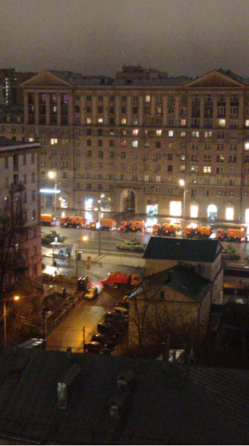 По Садовому кольцу в Москве сегодня. Там еще танки и много чего было.
