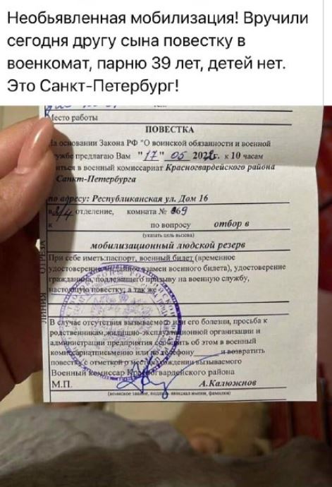Dekabraz писал(а): Про объявление мобилизации завтра и объявление войны 9 Мая -не сомневаюсь, что абсолютный фэйк, вообще и близко нет необходимости в мобилизации в России.