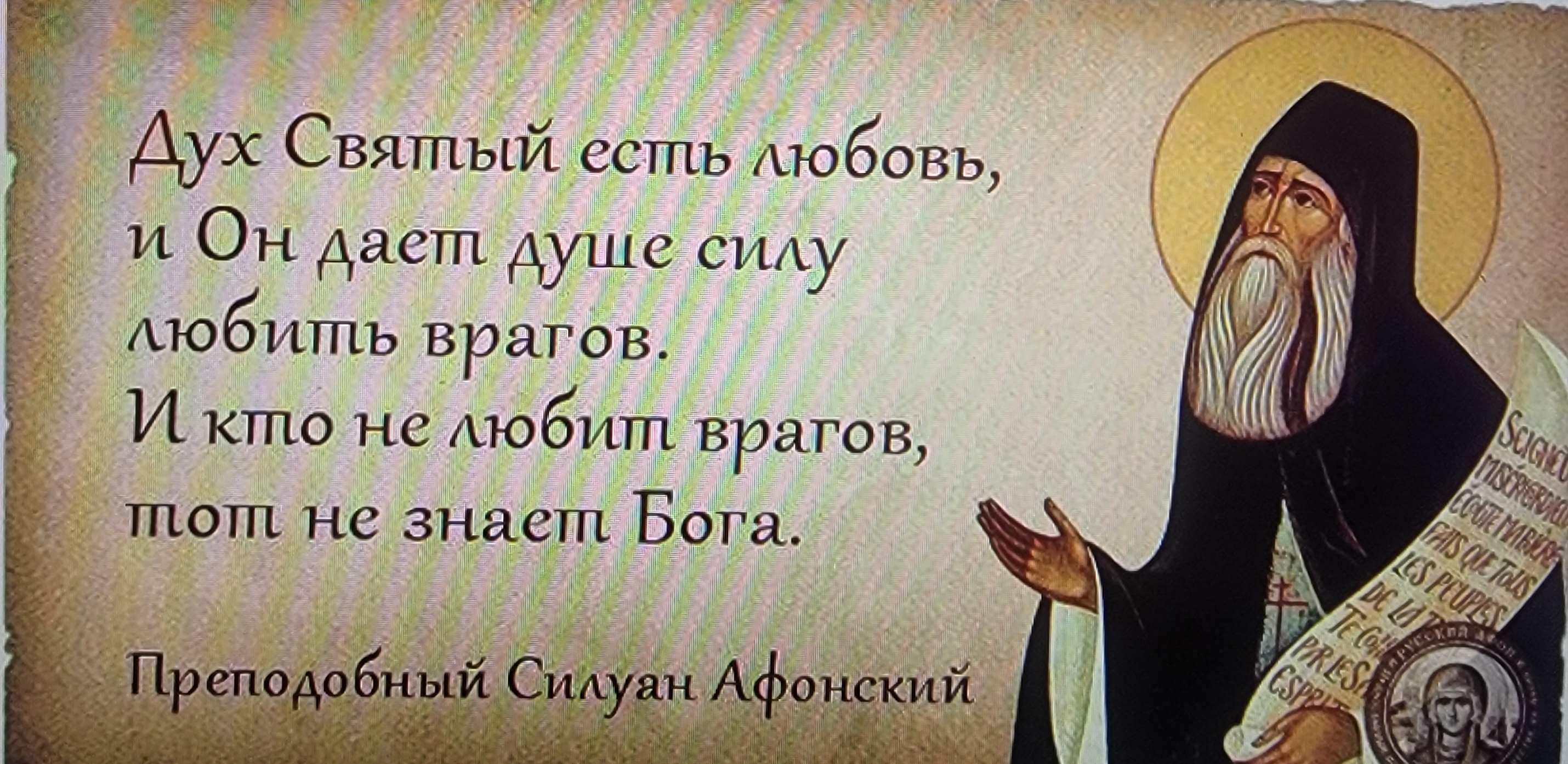 Господь заповедал любить врагов, и кто любит врагов, тот уподобляется Господу; но любить врагов возможно только по благодати Святого Духа, и поэтому, как только обидит тебя кто-нибудь, молись за него Богу, и тогда сохранишь мир в душе и благодать Божию."