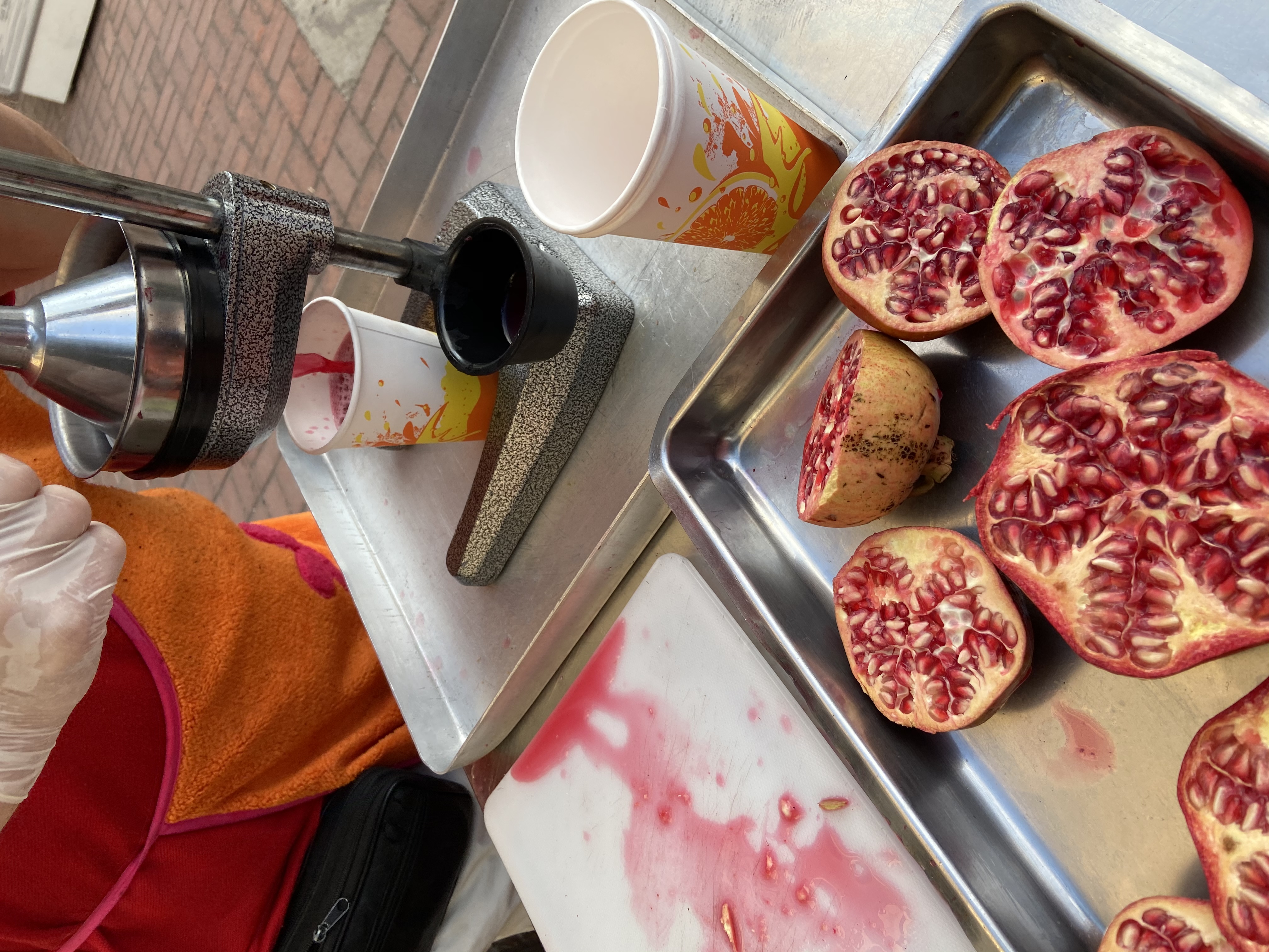 Пошли гранаты, впервые в жизни пробовала светлый гранат. Сладкий! Не знаю такой же он полезный, как и красный. Мне нравится, что идешь по улице, и тут тебе кричат и зазывают "Витаминэ, Витаминэ!!!" Подходишь к стойке и тут же при тебе тебе сделают стакан гранатового сока за 30лир ($1.70).