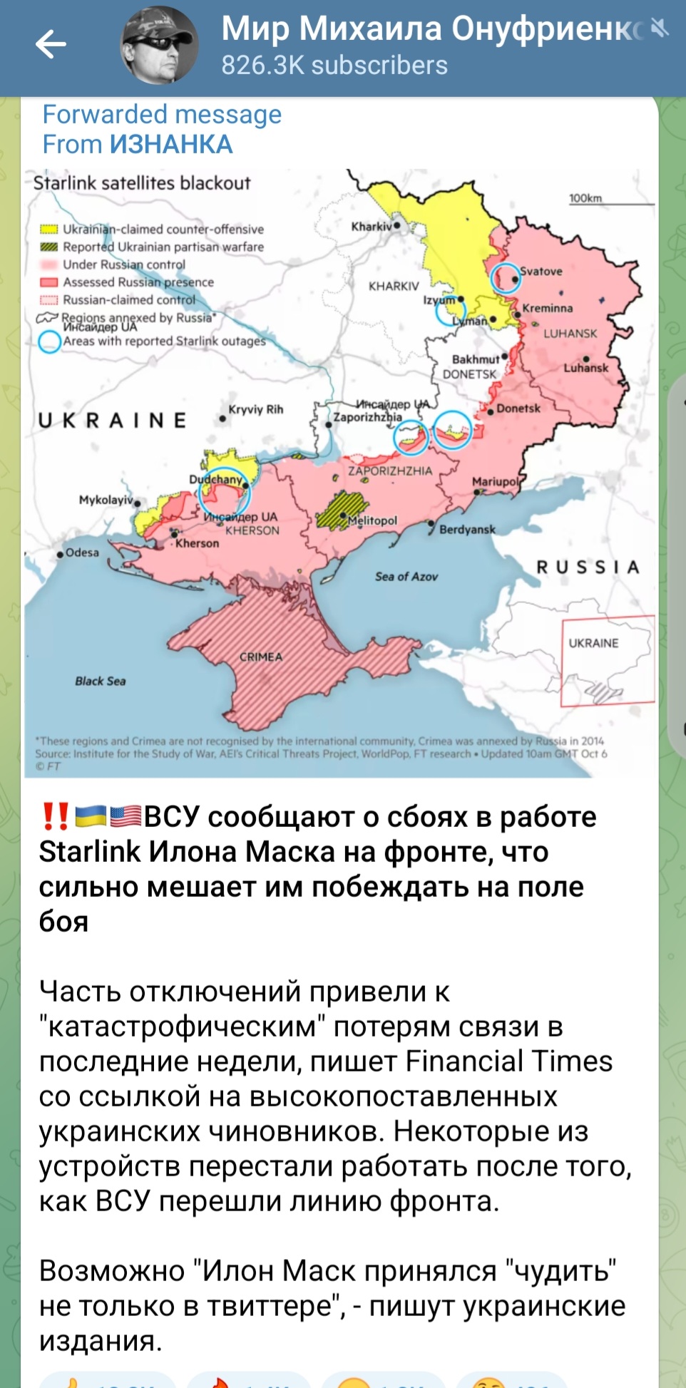 Илон МАСКаль  ВСУ сообщают о сбоях в работе Starlink Илона Маска на фронте, что сильно мешает им побеждать на поле боя Часть отключений привели к "катастрофическим" потерям связи в последние недели, пишет Financial Times со ссылкой на высокопоставленных украинских чиновников. Некоторые из устройств перестали работать после того, как ВСУ перешли линию фронта. Возможно "Илон Маск принялся "чудить" не только в твиттере", - пишут украинские издания.