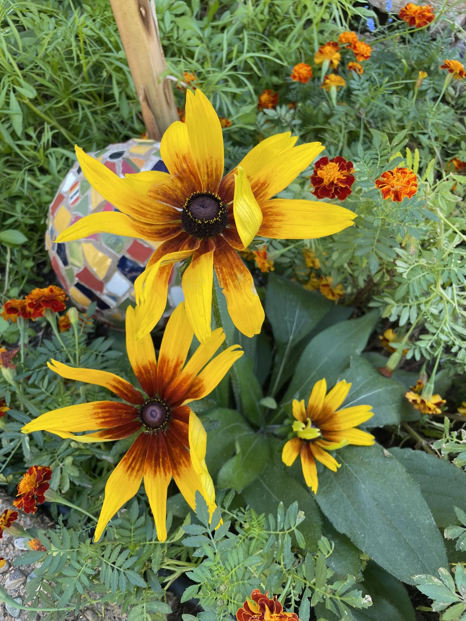 Учительинца, прохладное место - гараж? а с другой стороны, я вот помню, что раньше георгины в квартире под ванной на зимовку складировали, и ниче. зимовали. У меня опыта нет по ним, но это было как бы обычной практикой. Кстати, их ведь не надо было сейчас делить, весной вроде. Но могу врать. Подобный вопрос - у кого клубни Каладиумов. У меня в этом году их довольно много, хотелось бы попробовать сохранить. Есть опыт у кого? весной пакетик с типа *полевыми цветами* высыпала. Васильки, что-то типа незабудок, но не незабудки, еще что-то вполне себе дикорастущее в нашей местности - и вот эти, на фото. Полагаю, рудбеккия. Причем несколько разновидностей. Вот этот - самый мне наиболее нравящийся. Но цветоносы невысокие, что, мне кажется, для рудбеккии нетипично. Или бывает? Меня бы устроили невысокие... Народ, а у кого какие есть?