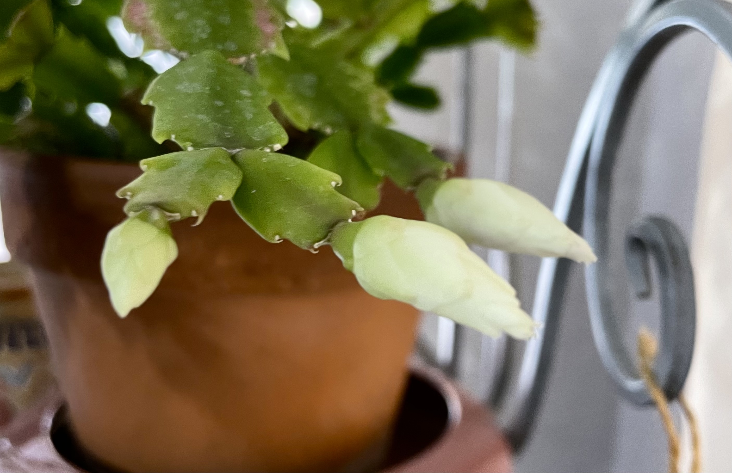 у меня дикая растет с другой стороны дома. Ну тоись не так чтоб прям далеко, но надо через крышу перепрыгнуть. Странно, что в этом году не было плодов на ней вообще. Может и не цвела? я чет не помню. Прослежу на следующий год, насколько одновременно они цветут. Но в целом мне ж не надо мешки ее - прет с нее знатно, а я могу хурму как не в себя закидывать...так тчо пусть будут умеренные урожаи  Ну и деревце еще небольшое совсем. В прошлом году отрастало полностью - после жука, который спилил ее чуть не у земли. Декабристы. Я домой два занесла, у которых были самые крупные бутоны. Уже вроде как ясно, какой цвет будет, со дня на день должны начать распускаться. Один-то прошлогодний прикуп - желтый, а вот второй - белый. Сроду у меня белого не было  А этот приличный куст, не первогодок какой. Может, не цвел никогда раньше? да вроде все цвели, больше-меньше, но все...Ну дождусь распускания, убедЮсь  Самый белый у меня был такой розовато-жемчужный, а этот пока - как снег.