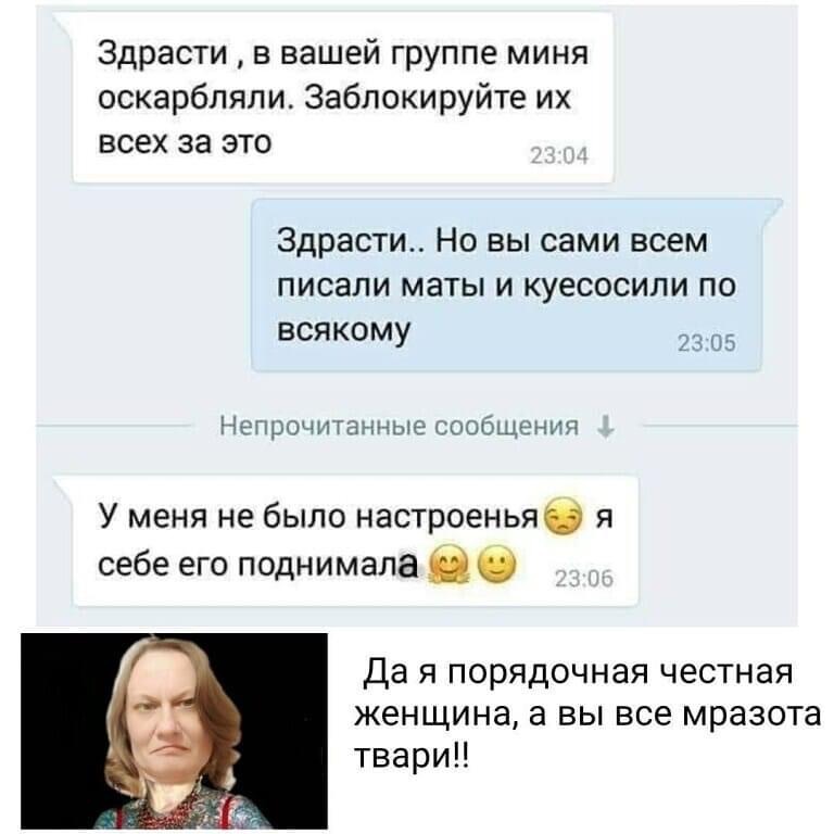 Mango Tango2 писал(а): Zoila Lewis писал(а): Fantastica писал(а): Ну вот вам, Азалия, пример, почему здесь не пишут. Все мои посты тут же удаляются модератором Пудиком. Идет избирательное виртуальное истребление участников форума. Заходите в Житие, там вас не тронут. Я попросила Пудика в личке удалить политику, ибо набежали и засрали топик даже там. Но никакой реакции от Пудика не последовало. Так что велкам.  Zoila Lewis, a дискуссия получилась интересной. зачем же удалять наиболее острые комменты?... чтобы опять все было пресно и ни о чем? может быть, Линда троллила, не знаю, но рациональное зерно присутствует в ее вопросах. и вопросы по теме - Житие. и вообще ... нехорошо указывать на форуме - кому, чего и где писать. ваша тема вам не принадлежит. и тема, и писанина в теме, являются интеллектуальной собственностью форума! почитайте правила форума. за свободу слова, все такое. Тема про житие, а туда натащили политику как будто в политическом разделе тем мало. Ну нравится вам политика везде - я рада. А мне нет. Тоже имею право высказать свое мнение. Что пишет ник линда- мне давно не интересно, я полоски не открываю, только если в цитатах засвечивается.