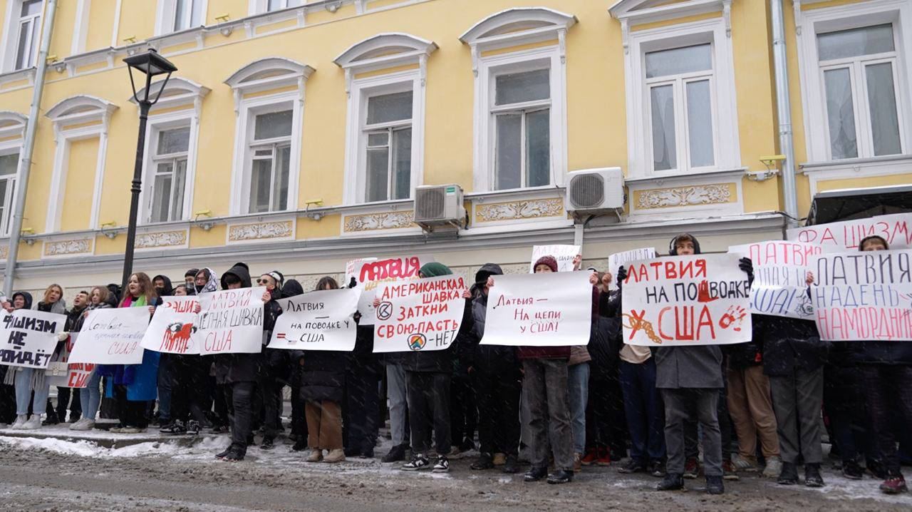 Активисты принесли символы латвийской «незалежности» к посольству