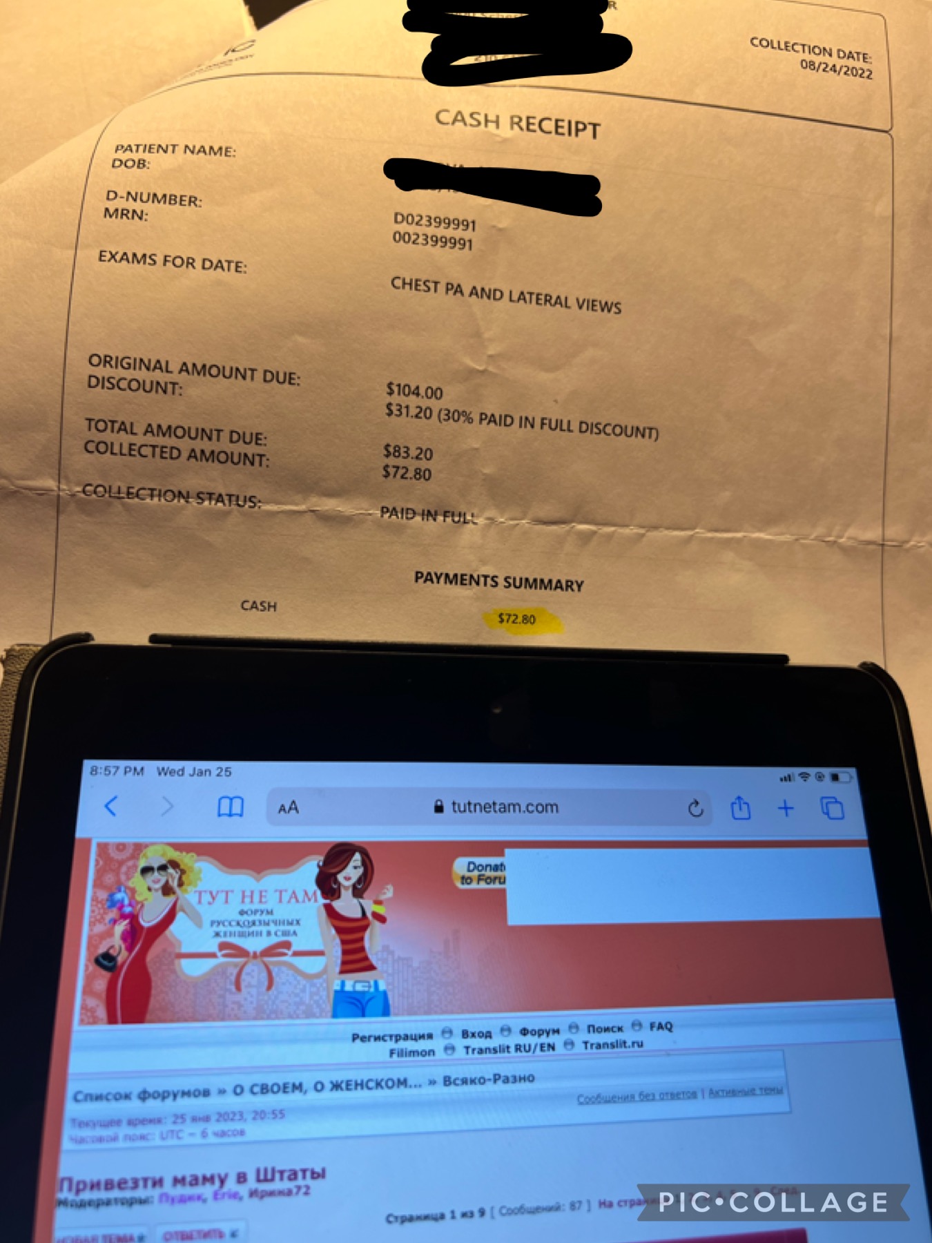 Linda Subtle писал(а): ПростоКваша писал(а): Вот два чека X-ray. Полная стоимость БЕЗ страховки и сколько я заплатила с дискаунтом. Еще чек от визита к неврологу $80. Самый первый визит был $365. Все последующие визиты $80. Мне нет никакого смысла сидеть тут и пиздить. Покажите СВОИ чеки с тысячами за рентген! Никого вас несщасных мы не обдираем и на шее ни в кого не сидим. Ты уже свои фотки беременной постила, а так же что за тобой очередь из миллионеров выстраивалась. 80 $ - это копей за каждый визит к специалисту по страховки твоего мужа, МАМЫ - не покрываются, тут медсестра получает 80$ в час , а то невролог  причем здесь страховка моего мужа? Моя мама ни к чей страховке не прикреплена. Или вам возразить уже нечего и в ход пошел традиционный срач? А то, что я специально сделала фото на фоне форума- тоже пиздеж?
