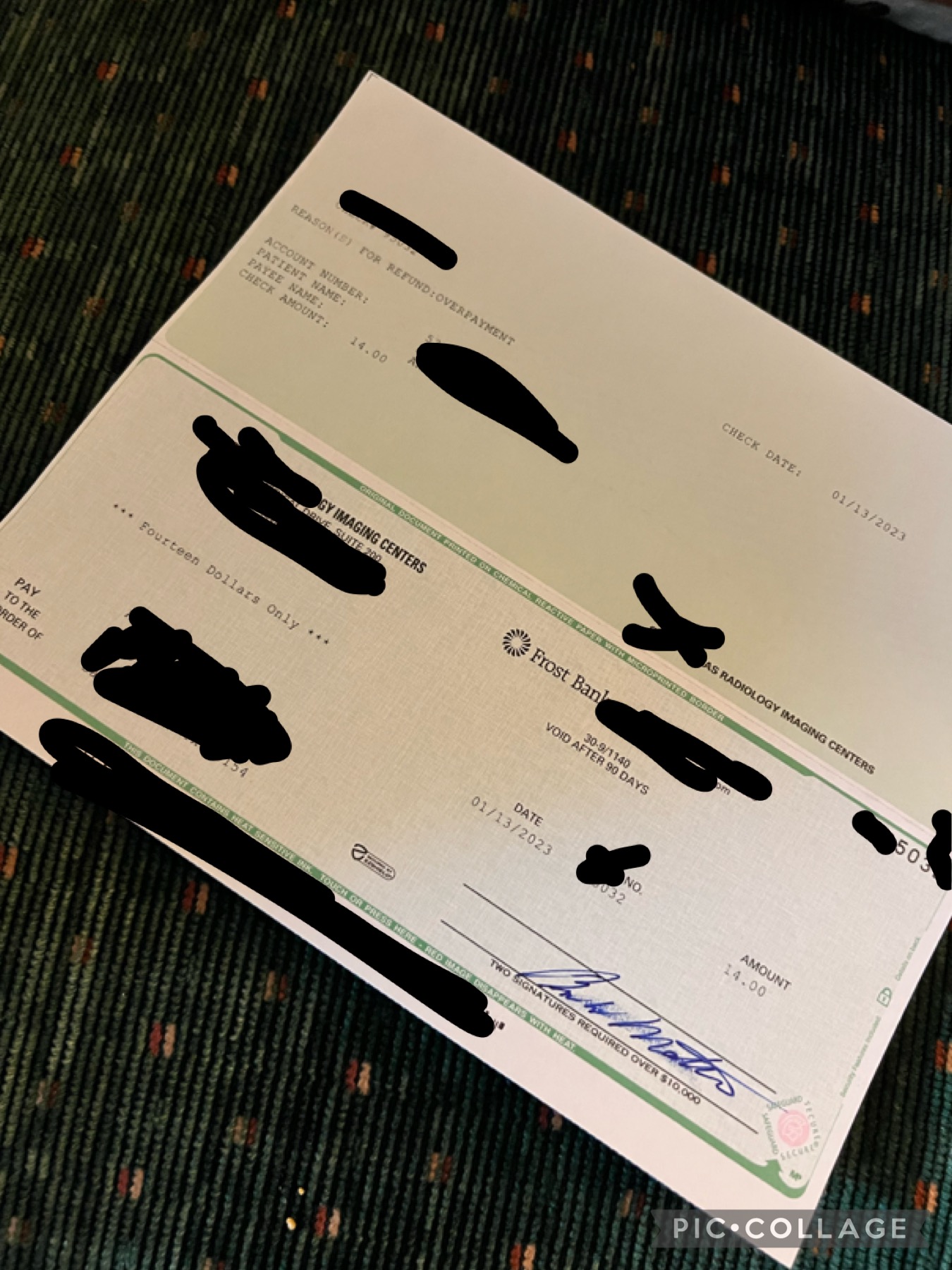 Линдос... ты вчера сказала, что нам пришлют счет на $$$, потому что не верила, что Xray может стоить $70$80... Так вот... Сегодня пришел чек на имя мамы с суммой $14. Оказывается мы еще переплатили!  Мелочь, а приятно:) Итого последний Xray был не $80, а $66!
