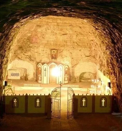 Телеканал "Спас". Соледар. Посмотрите, какая святыня в этом городе. Подземный храм, вырубленный из соли. Ещё в конце 19го века его высекли шахтеры - для себя. На стенах из соли до сих пор читаются вырезанные лики святых. Похоже, это самый глубокий храм в мире: он на глубине 300 метров. Посвящён храм Вознесению Господню. То есть празднику, вспоминающему, как Христос вознёсся в Небо. Так, на большой глубине под землей - храм, связывающий это поземелье и весь этот город с Небом. Так же, как этот храм, связывает эту землю с небом теперь и кровь наших героев. И это тоже евангельская "соль земли" (Матф. 5:13), которая и из этого соленого города осаливает теперь и нас всех, весь подрастерявший свою солённость тыл. Россия, люблю!