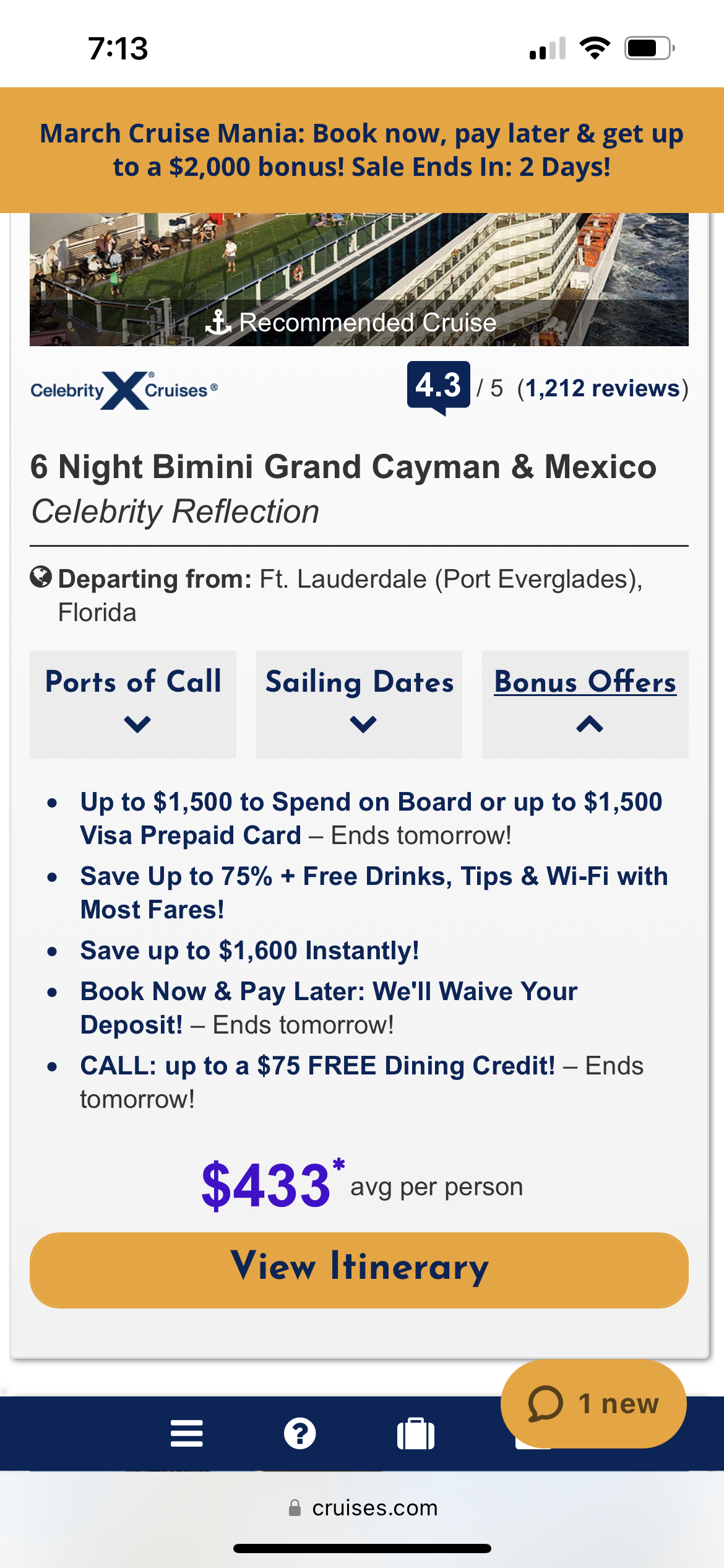 Рент дорогой, а на круизы всегда deal.