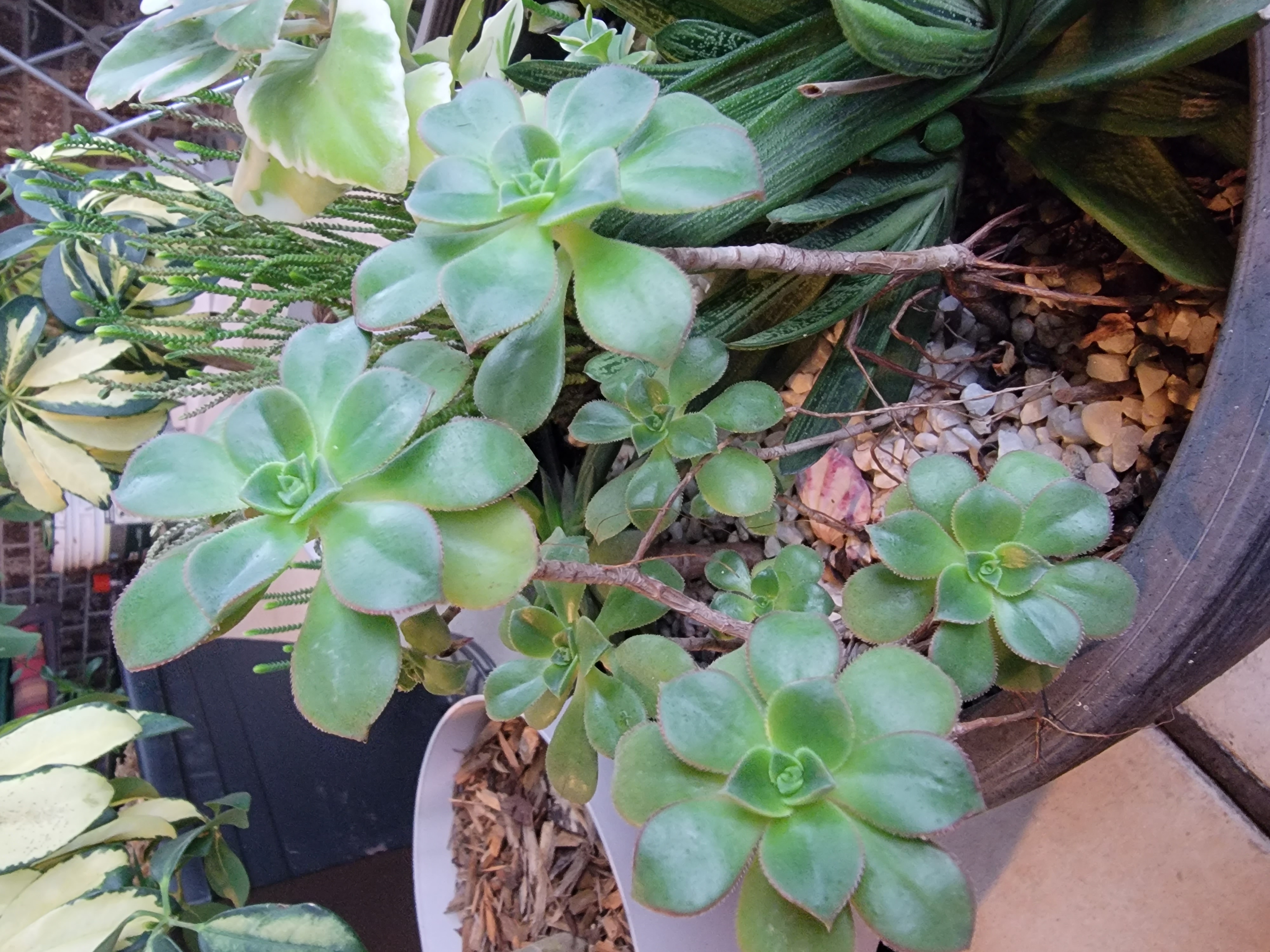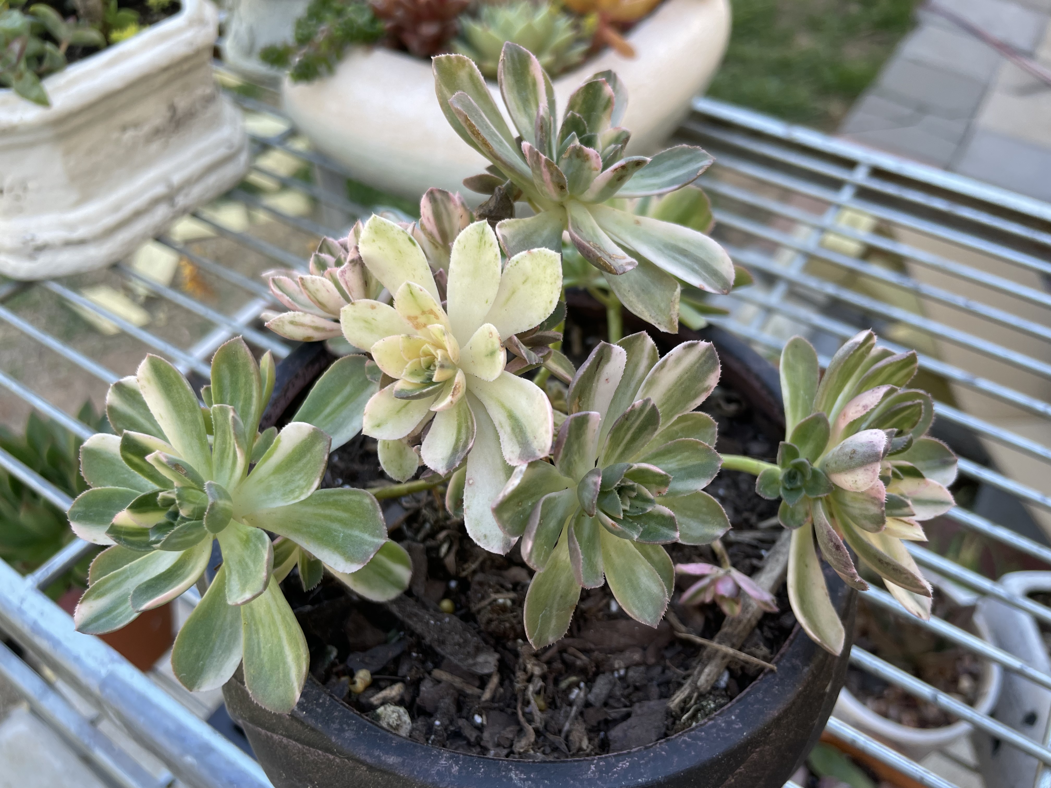 mardi gras и еще две крокозябры (вчерашний улов)- в совсем маленьких (2 инча) горшочках. Но при правильной посадке и уходе эониумы довольно быстро растут.