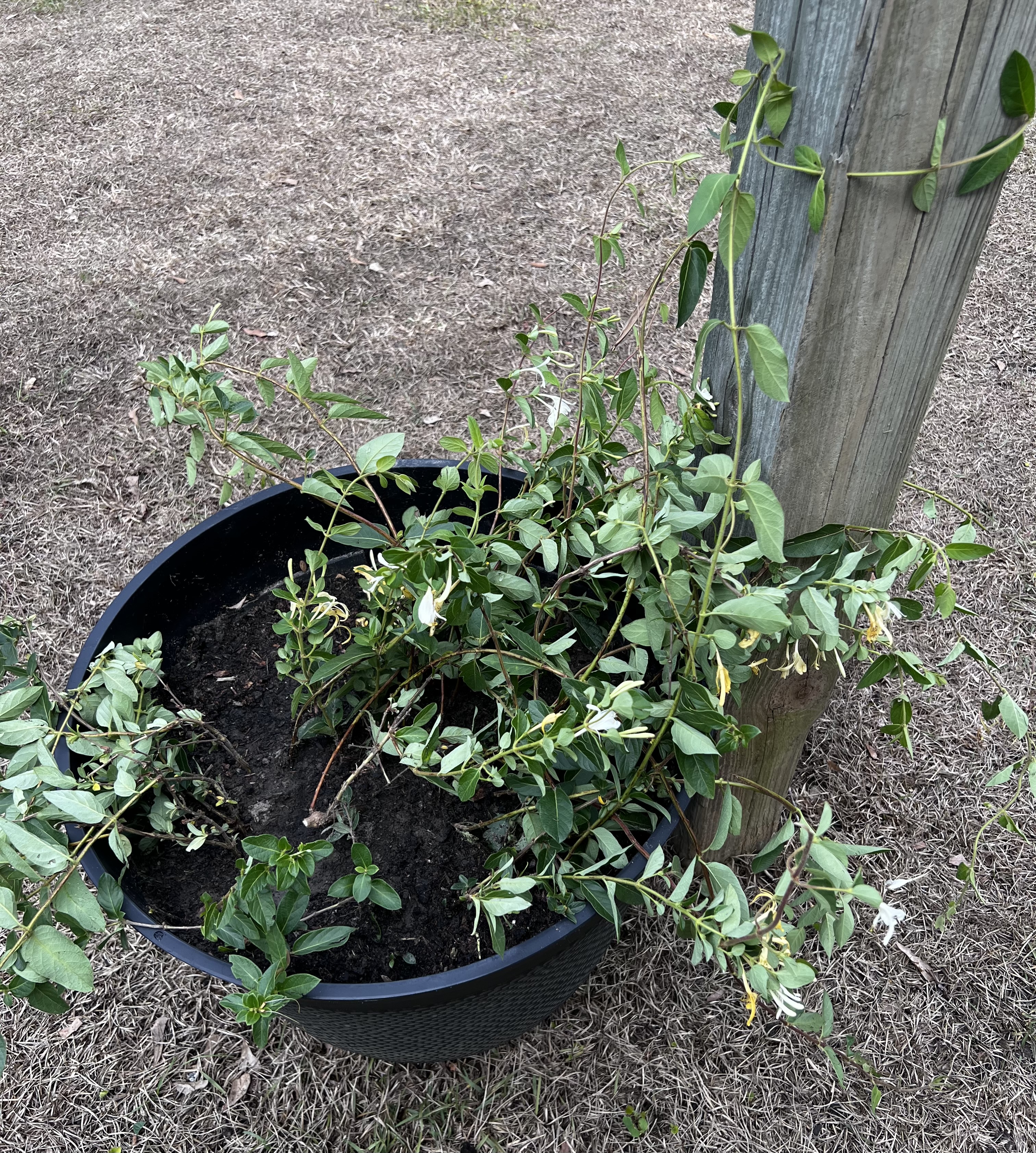 Вчера вырыли в дикой природе куст Japanese honey suckle, посадили в горшок. Запах- мимими. Надеюсь приживется.