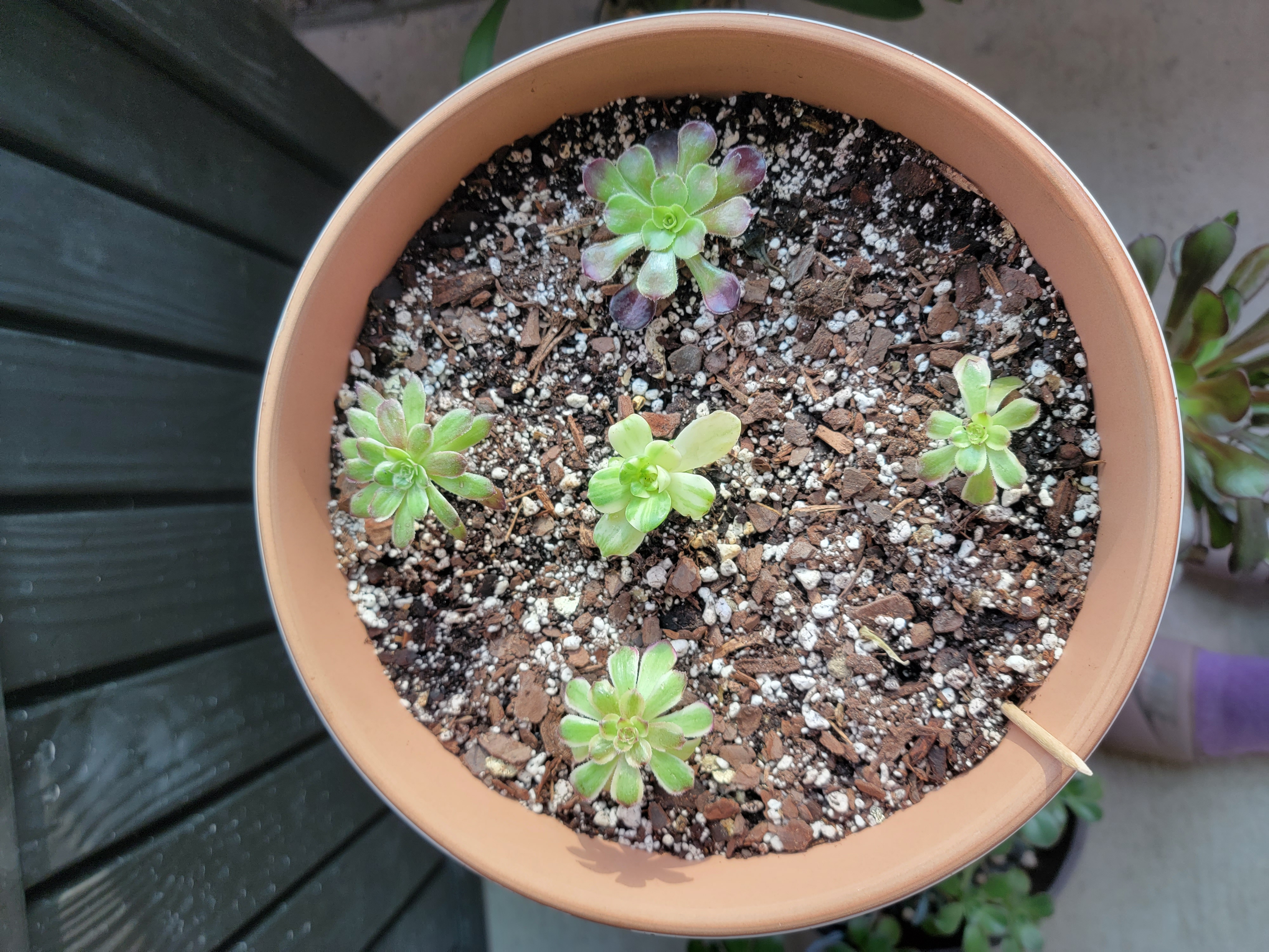 да, это тот, с крупным розовым цветком. Че у тебя с Адениумами? Мой (который твой) с бутонами никак не разродится. Очень хочется увидеть цветок. но все никак. Эониумы растут, спать пока не собираются. Эти черные вымахали уже очень прилично, один начал куститься.