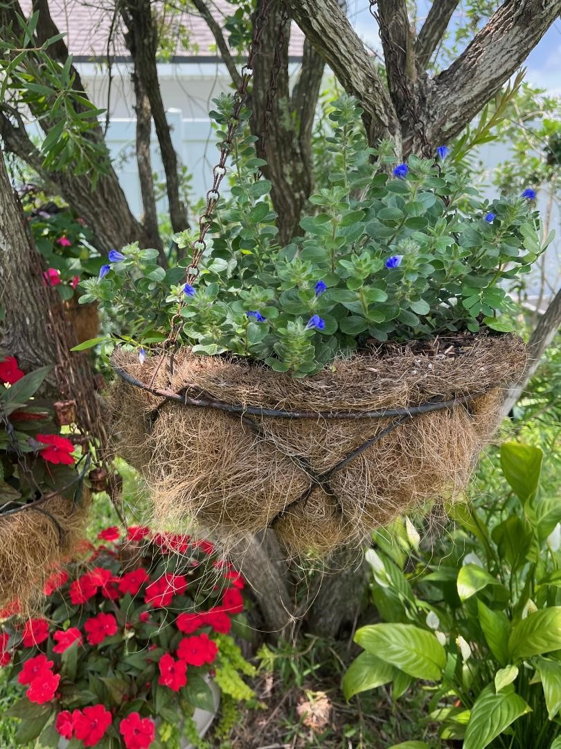 Мне лобелии голубые очень нравятся, но они только весной цветут, потом погибают от жары. А красные-белые, лучше, чем sunpatients ничего нет!!!Они реально яркие, очень пышные и цветут до зимы! Жаль, что синего у них нет ...из синего вот только начинают цвести ,вроде,blue blaze . Тоже жару выдерживают прекрасно. !Я к 9 маю всегда сажаю красно-бело-голбые цвет в горшок. Лилия, очень милый балкон!!!