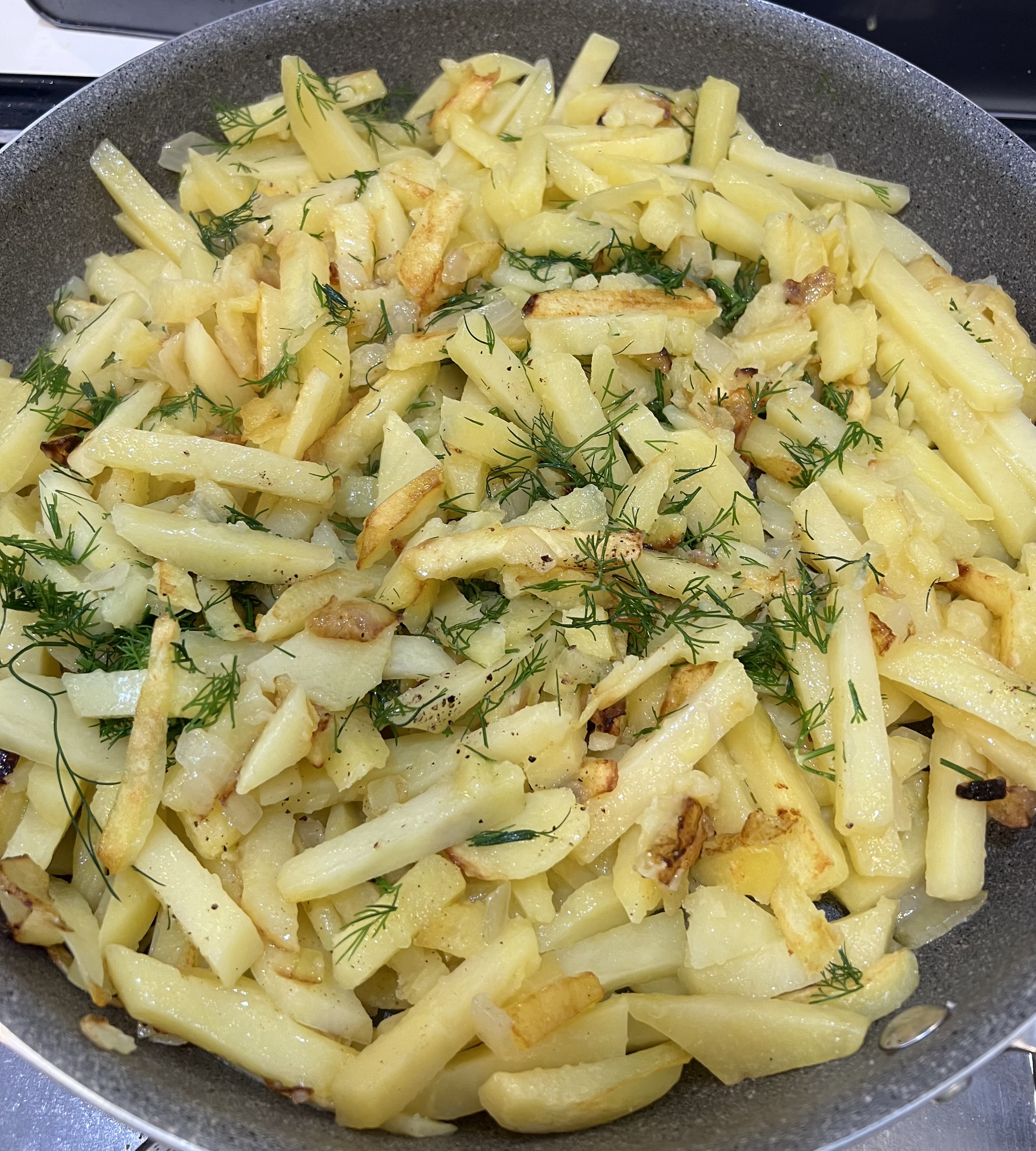 А вот - кому картошки жареной???  В процессе, с собственным укропом!