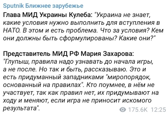 Tatmilka писал(а): Villoresi писал(а): «То, что лидеры НАТО не подписывали декларацию – это всё равно что подписали. Просто такая процедура» – Зеленский "технически мы Крым взяли" (с)  Вообще-то это заявлял ПРигоже=ин о Бахмуте