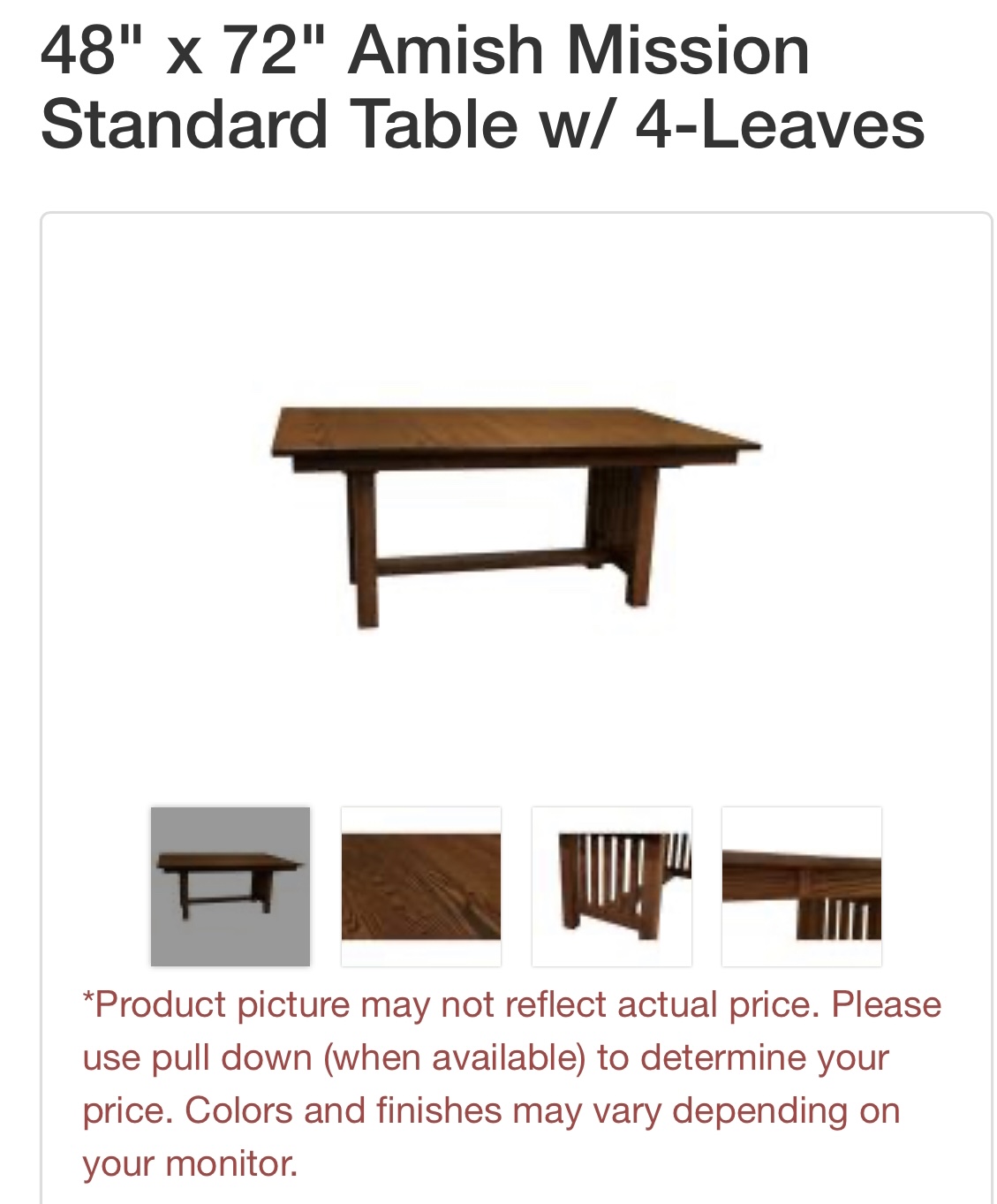 Мой чтоб два раза не вставать ( не платить еще раз за доставку), заказал огромный столище 48 на 84 там же у амишей, которые делают уже две кровати и дрессер. Вот такой, только размер больше и цельный, без раздвижных деталей.