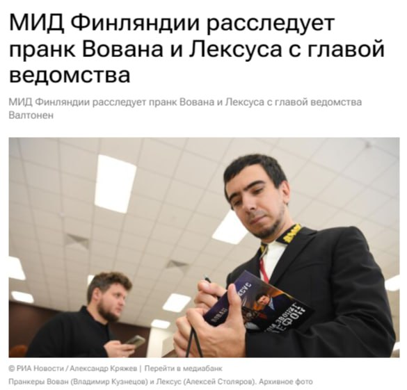 Ранее в среду финские СМИ со ссылкой на российские сообщили об участии Валтонен в пранке Вована и Лексуса, которые позвонили министру от имени одного из африканских политиков. Позднее последовала реакция МИД Финляндии, в которой заявили о начале расследования. Уточняется, что расследование началось спустя почти полдня после того, как об этом стало известно. В министерстве подчеркнули, что видеозвонок был обычным и не вызвал подозрений. Чёт обиделись (с)