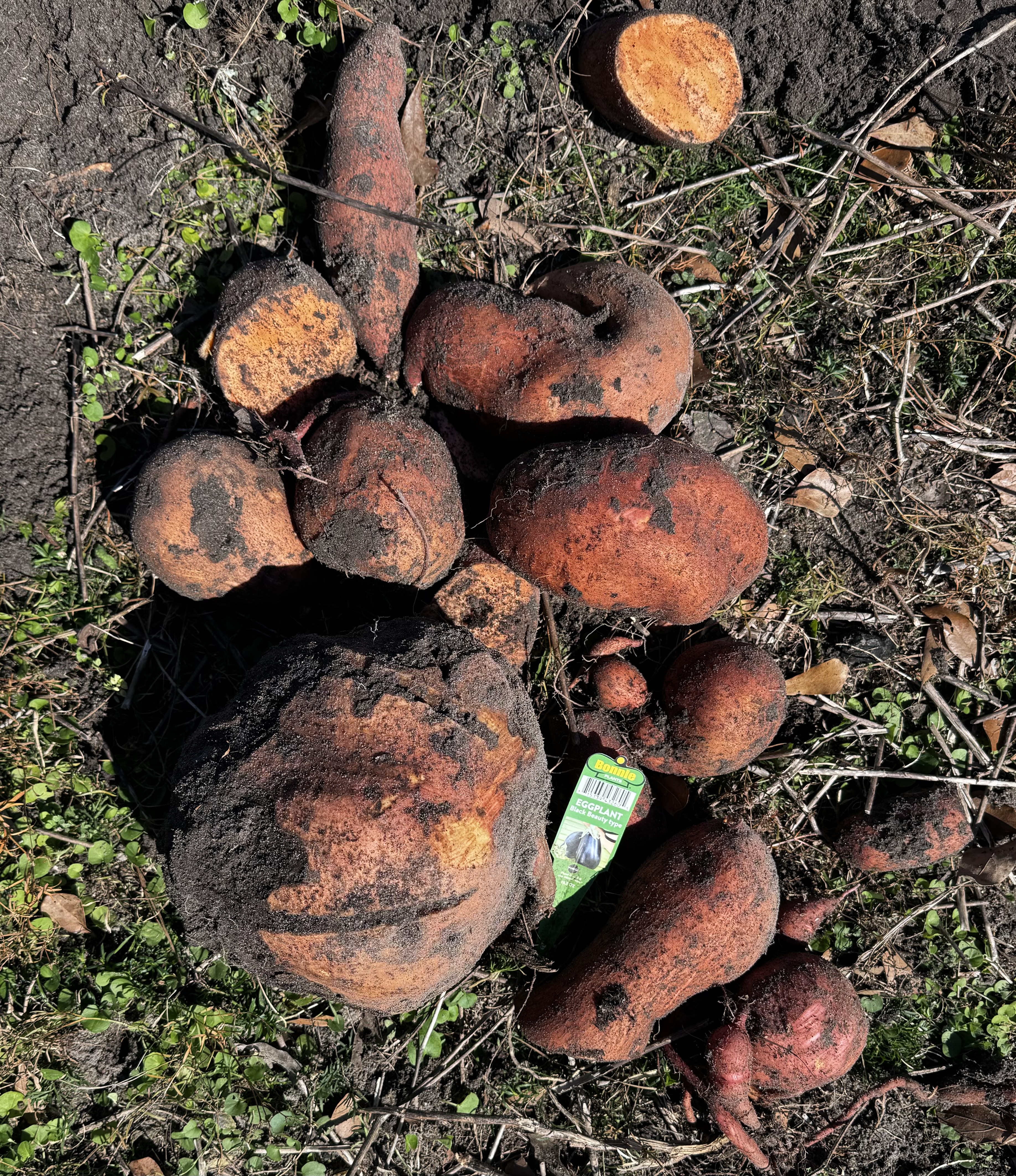 Убиралась сегодня в огороде. Неожиданно обнаружила выросшие клубни сладкой картошки. Я думала, что она не уродилась, листва засохла и забросила ее, там было 3 кустика. А вот и нет.