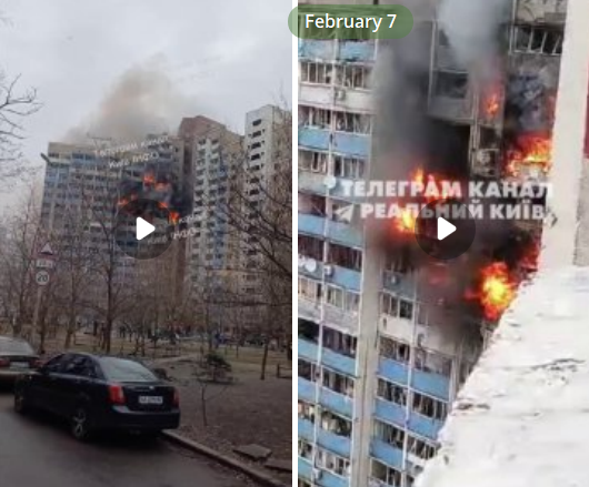 При попытке сбить ракету ВКС РФ, НАТОвская ракета ПВО опять попала в многоэтажку, вызвав пожар на нескольких этажах.