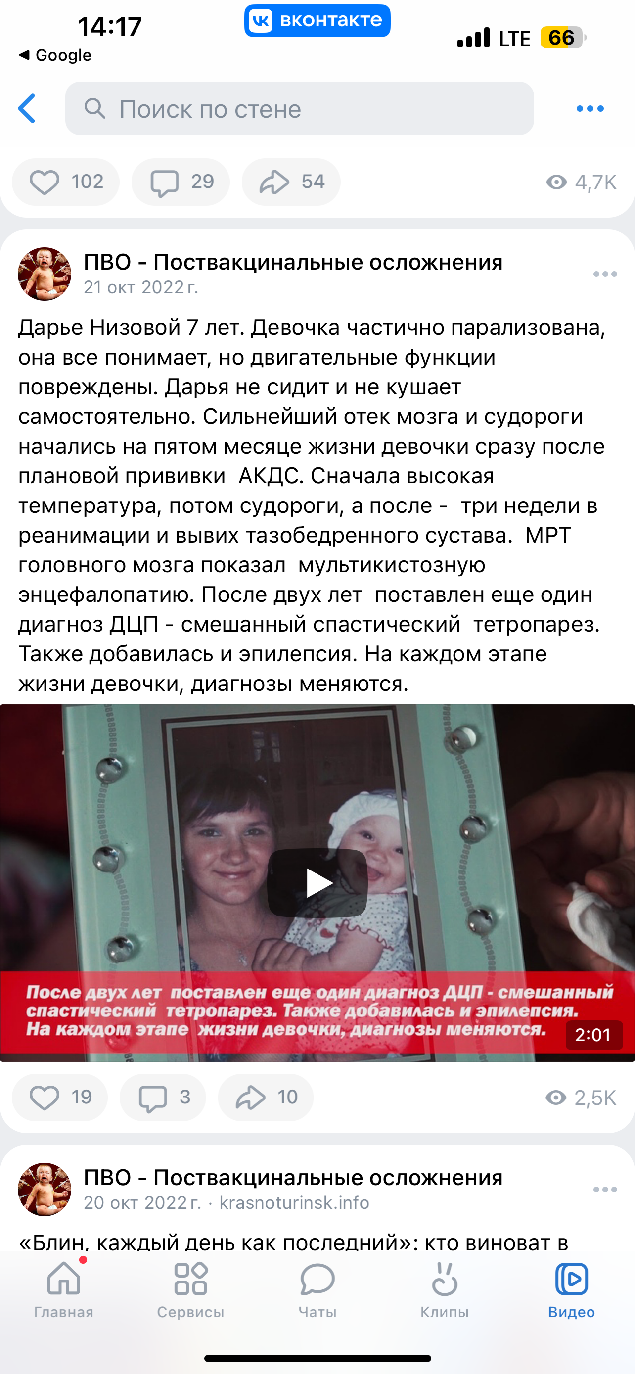 Вадим родился с диагнозом «Здоров». В три с половиной месяца после вакцинации АКДС у Вадима появились судорожные приступы, артериальное давление и образовались опухали в головном мозге, это указано в медицинских выписках. Вадима лечили во многих Краевых и Федеральных больницах России. Министерство Здравоохранения России ежегодно выделяло квоту на лечение в государственные клиники и больницы на территории России. Но от полученного лечения положительных результатов не было, это указанно в медицинских выписках (все методы лечения исчерпаны, лечение нецелесообразно в связи с низким потенциалом, ребёнок не излечим). И Федеральные больницы больше не принимают на лечение ребенка. Вадиму в Германии было проведено четыре операции на головном мозге, и удалена левая лобная доля головного мозга. Мальчик уже длительное время борется за свою жизнь и мечтает стать здоровым ребёнком, как все дети.