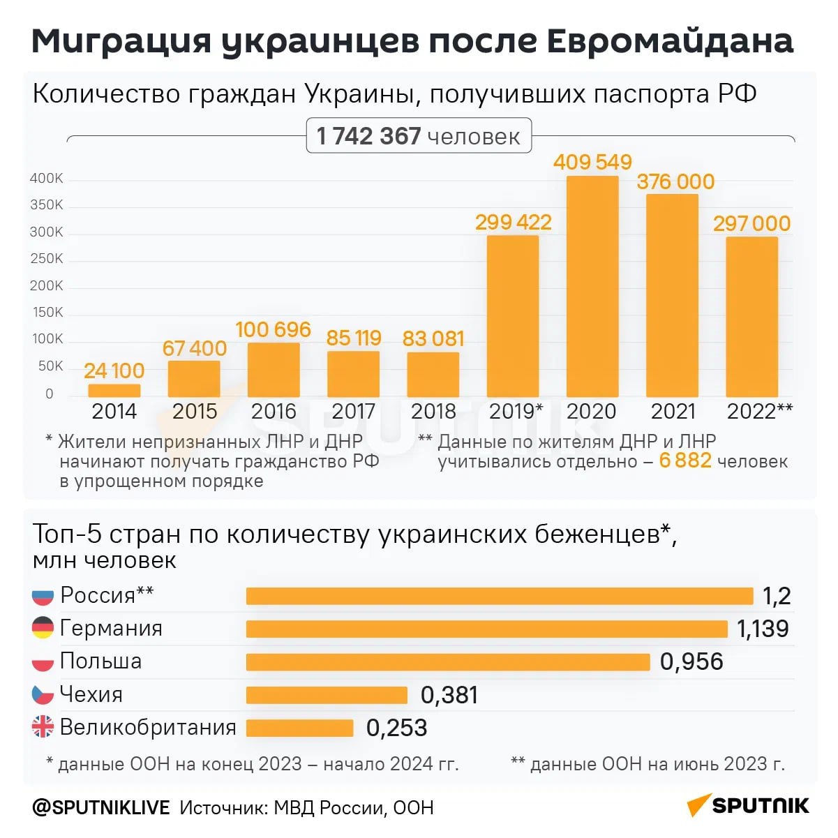 ▪️С 2014 года паспорт РФ получили более полутора миллионов бывших украинских граждан.