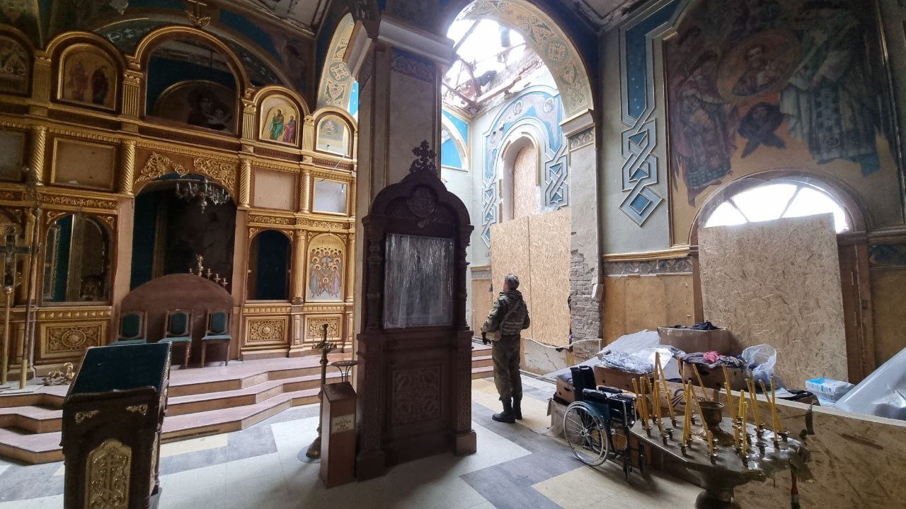 Этот храм-мученик похож на человека на войне. В тяжёлой обстановке боевых действий нужно сохранить свою душу.