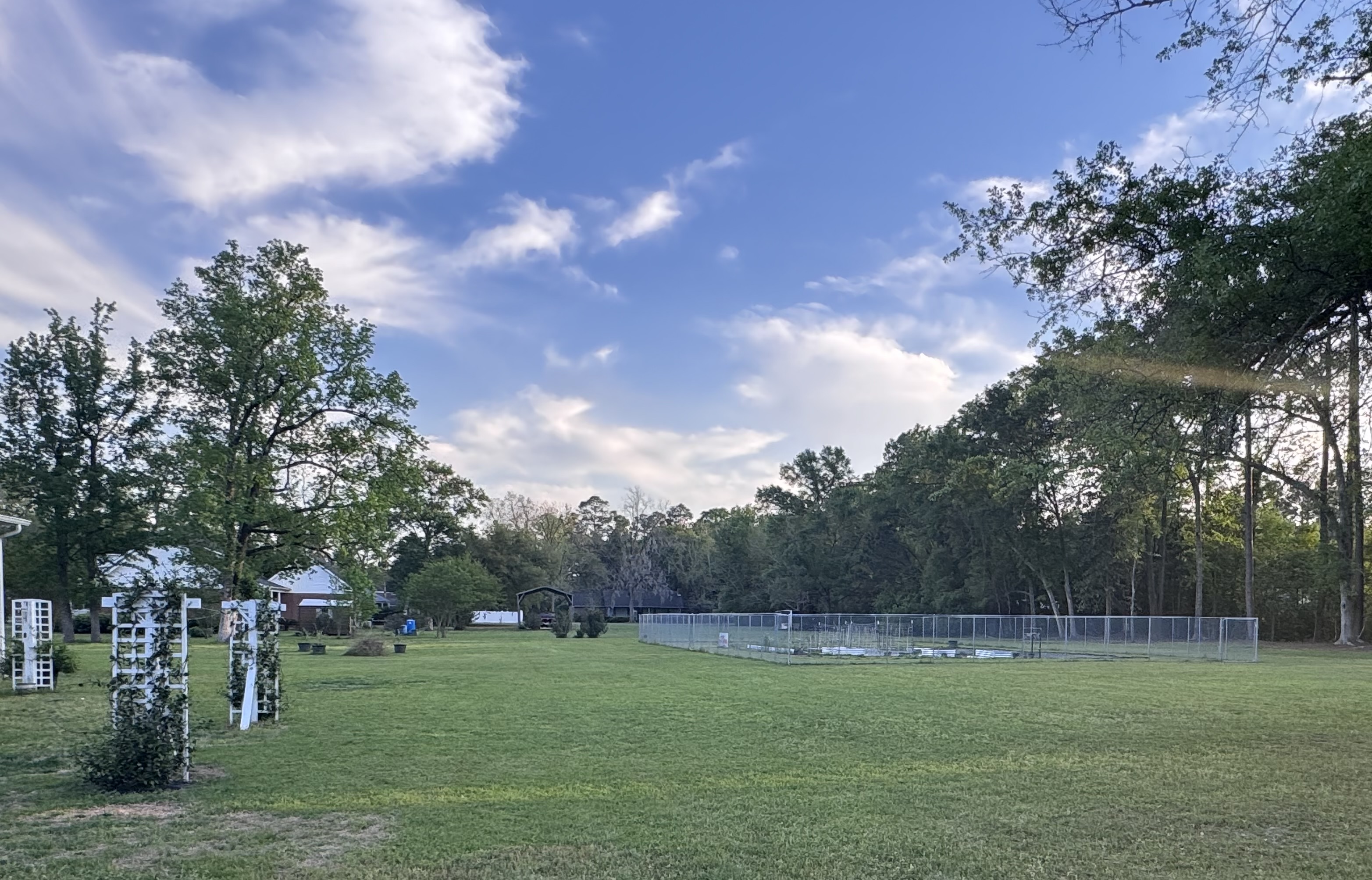 Вот- фотка огорода издалека. Ну и сад- 90 плодовых деревьев. И всех надо обиходить.